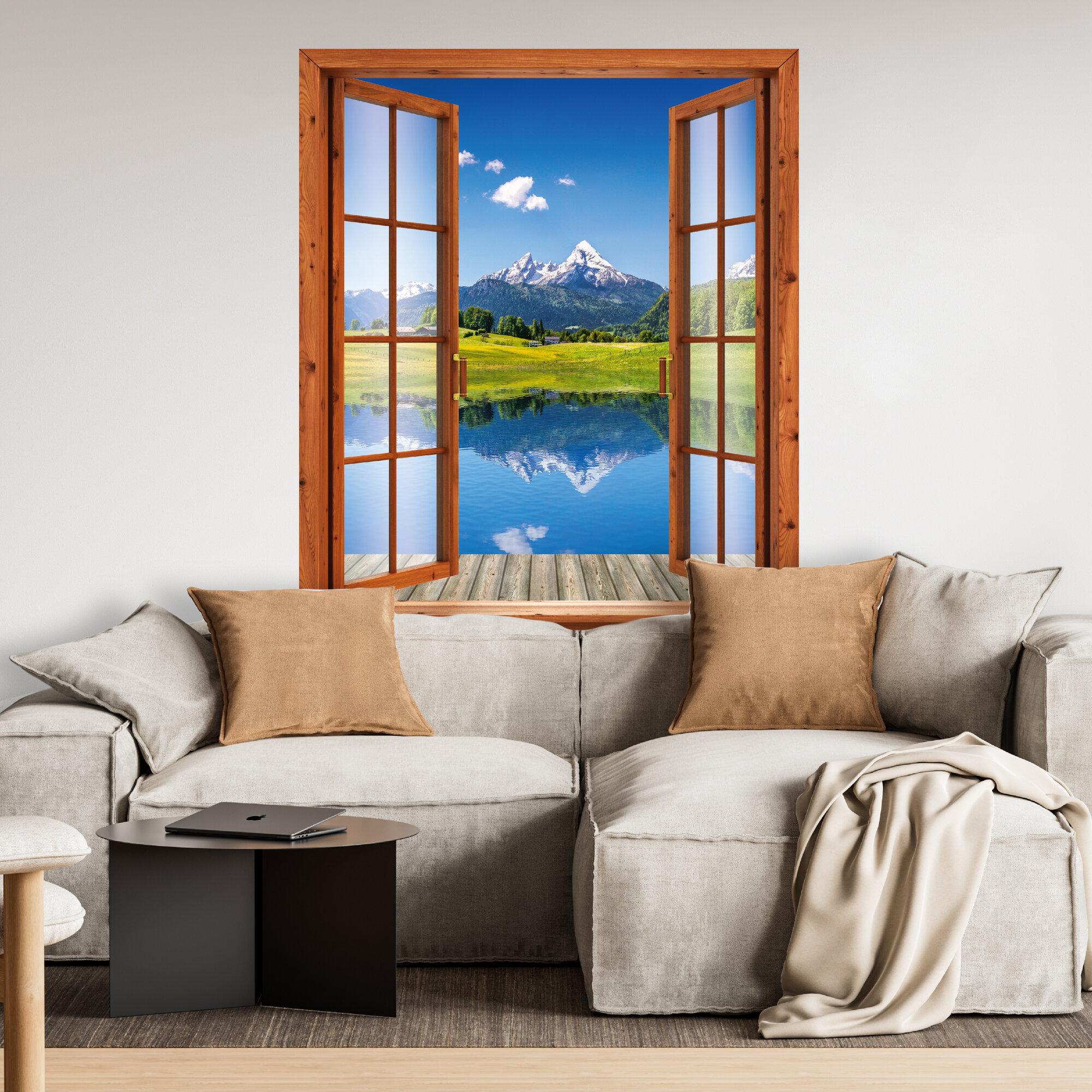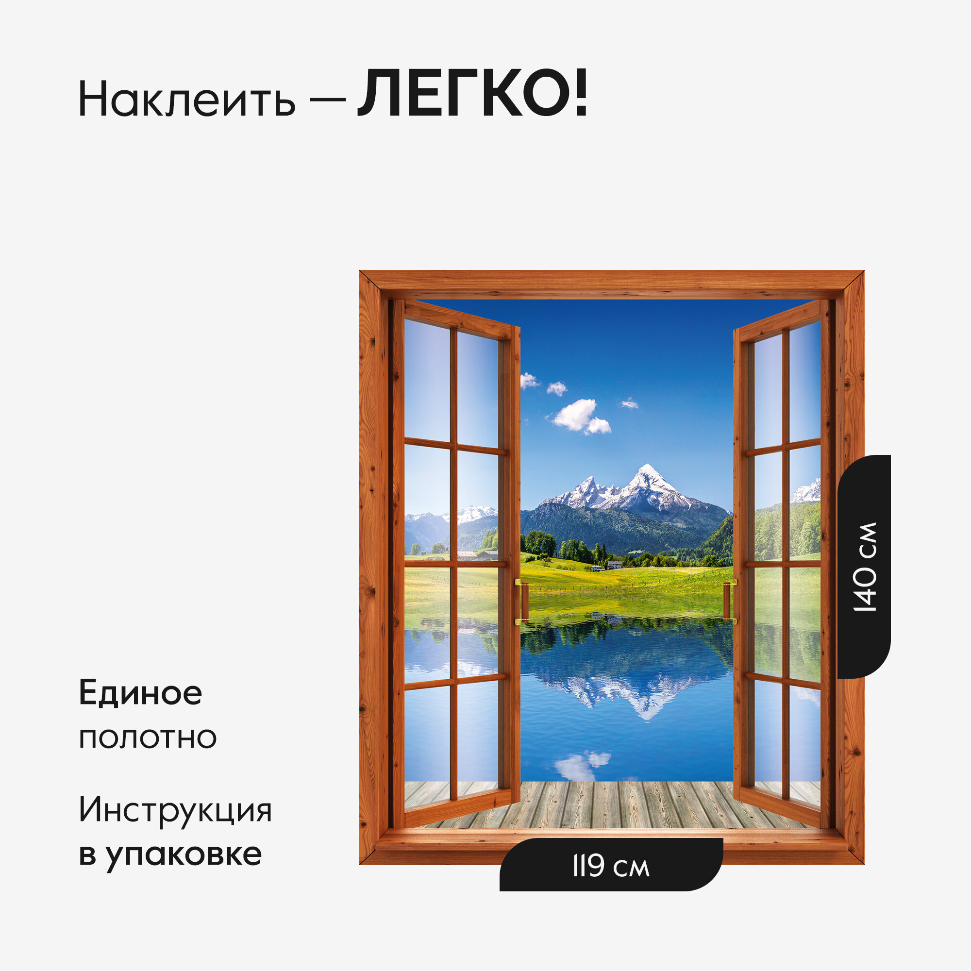 Фотообои Postermarket "Окно на озеро" бумажные, 119 х 140 см. информация: