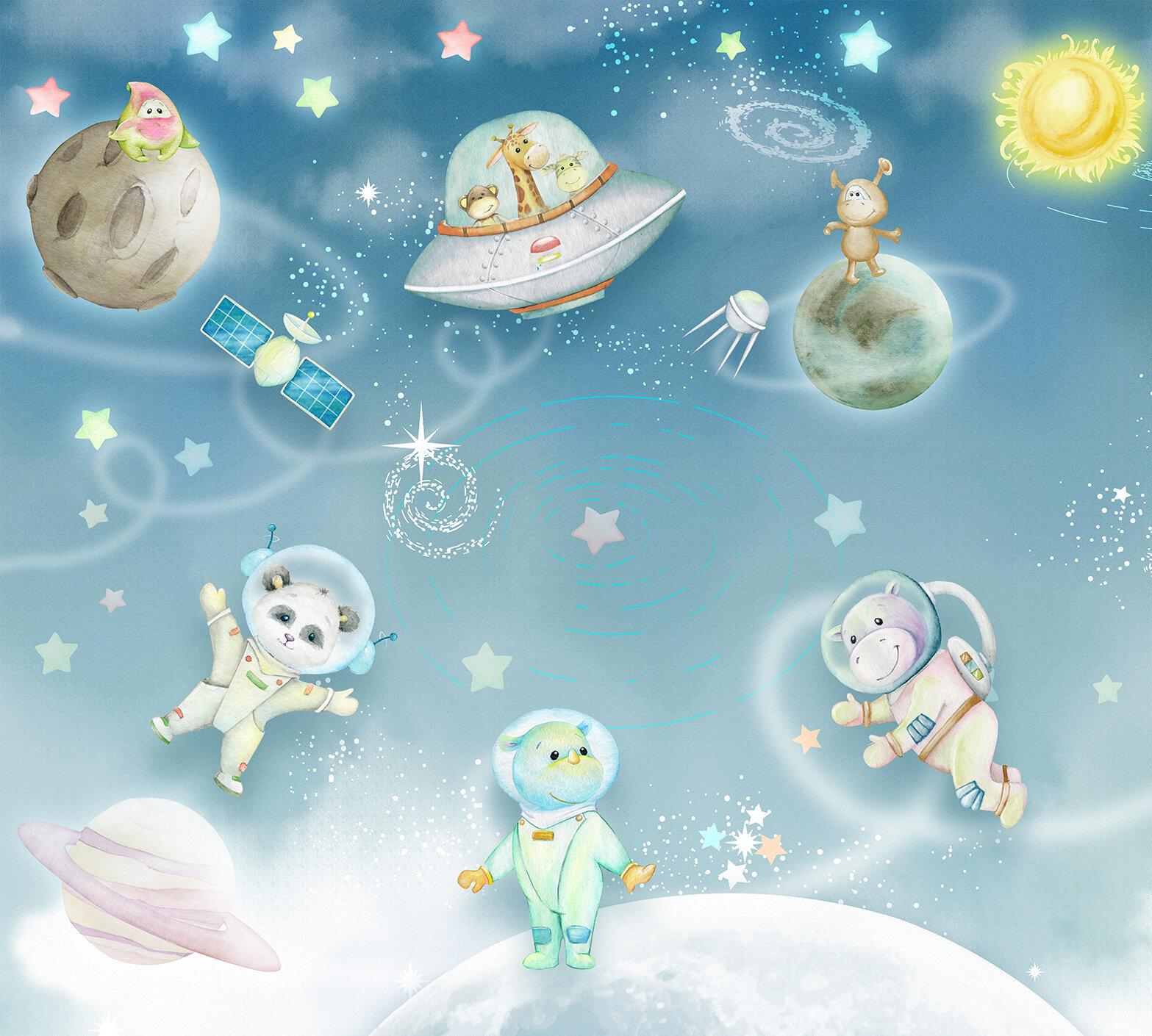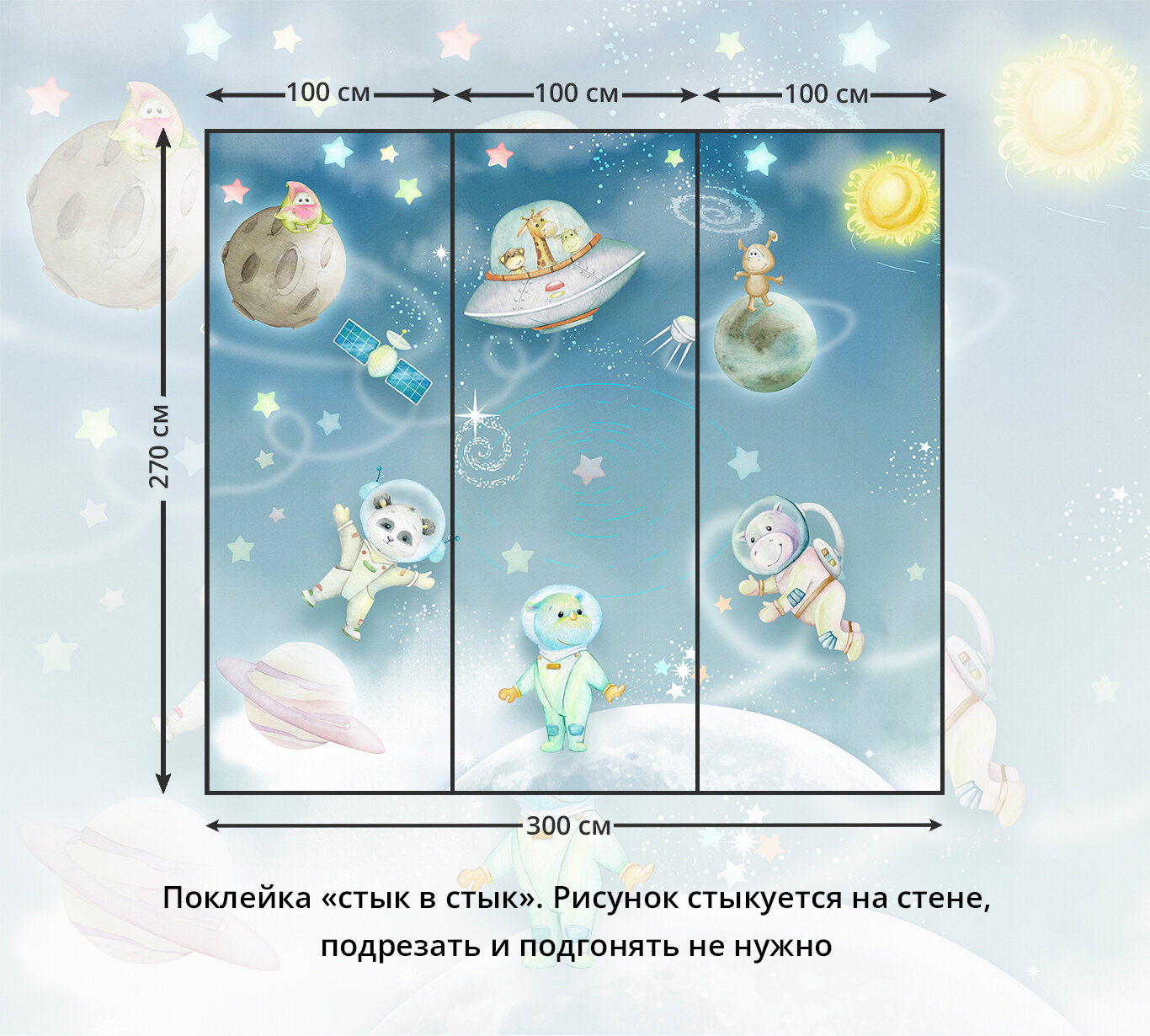 Фотообои на стену флизелиновые без винила детские Животные космонавты 300х270 см информация:
