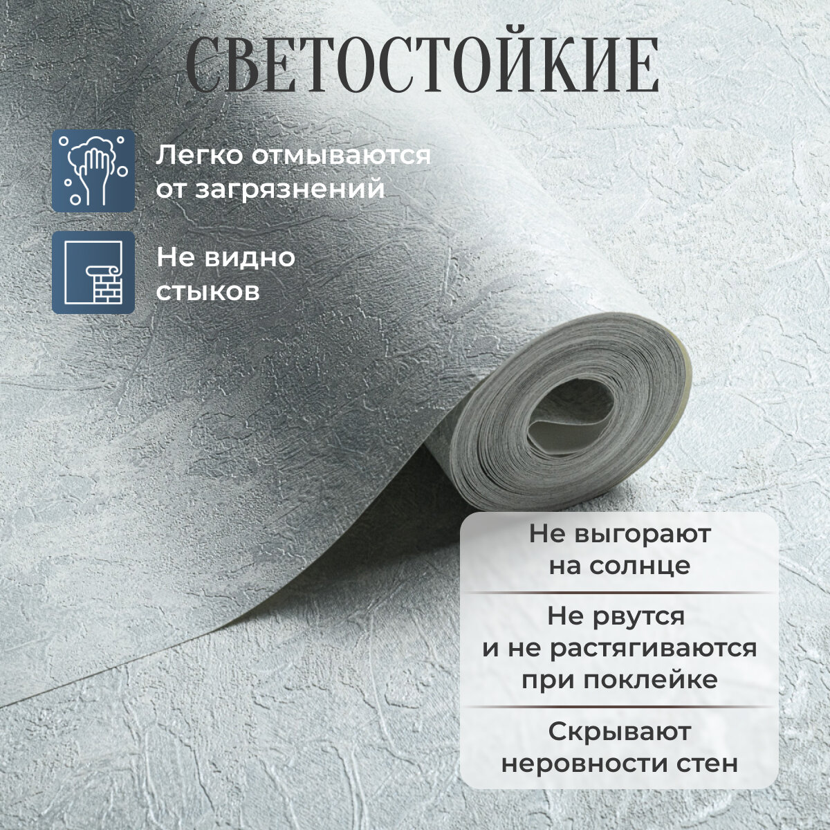 Обои, Wallpaper Real Classic blue сверхпрочные, Флизелиновые, виниловые, серые, под штукатурку информация:
