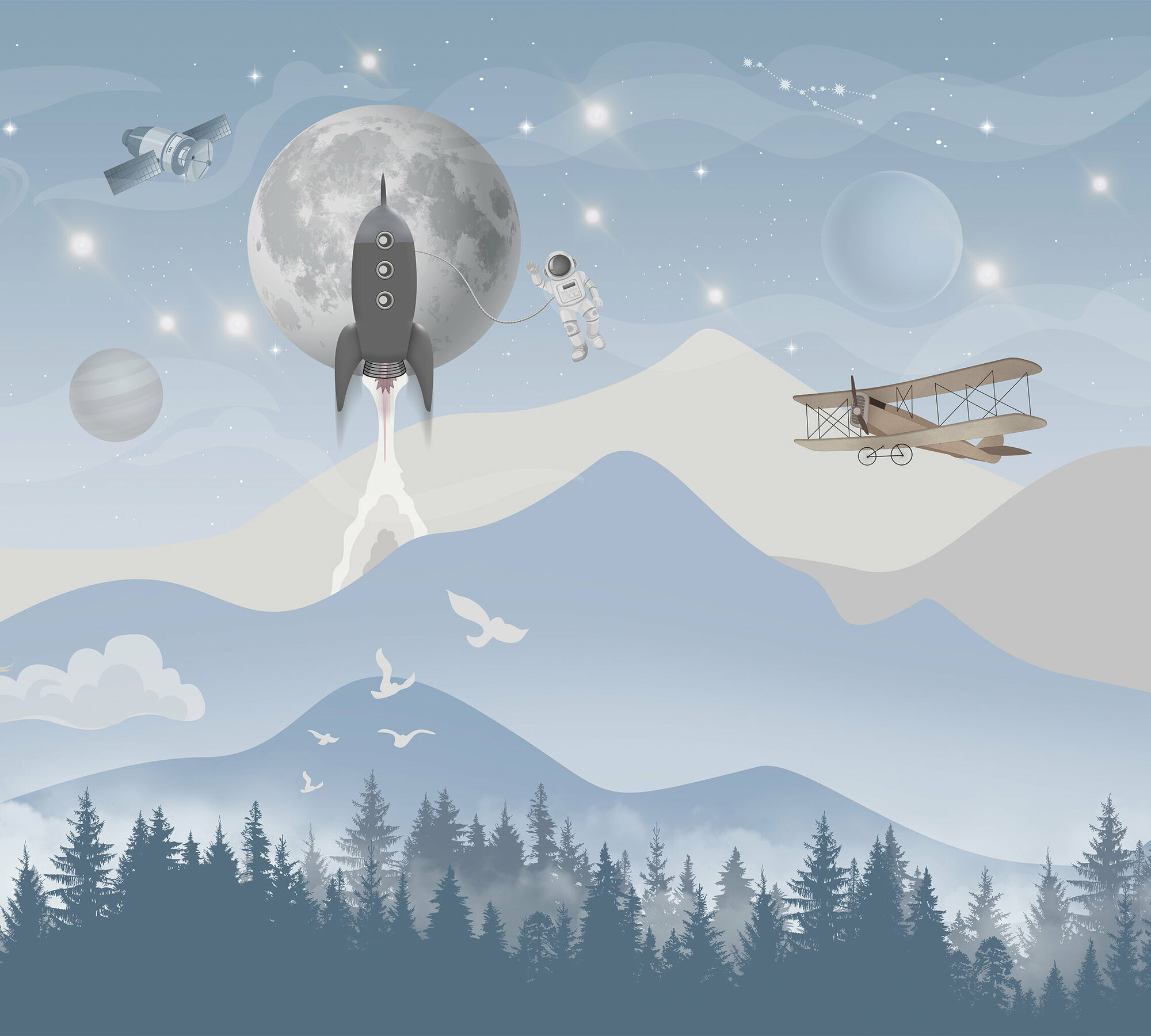 Фотообои на стену флизелиновые 3d Детские Для подростка Космонавт Космос 200х270 см Bartonwall K301-C