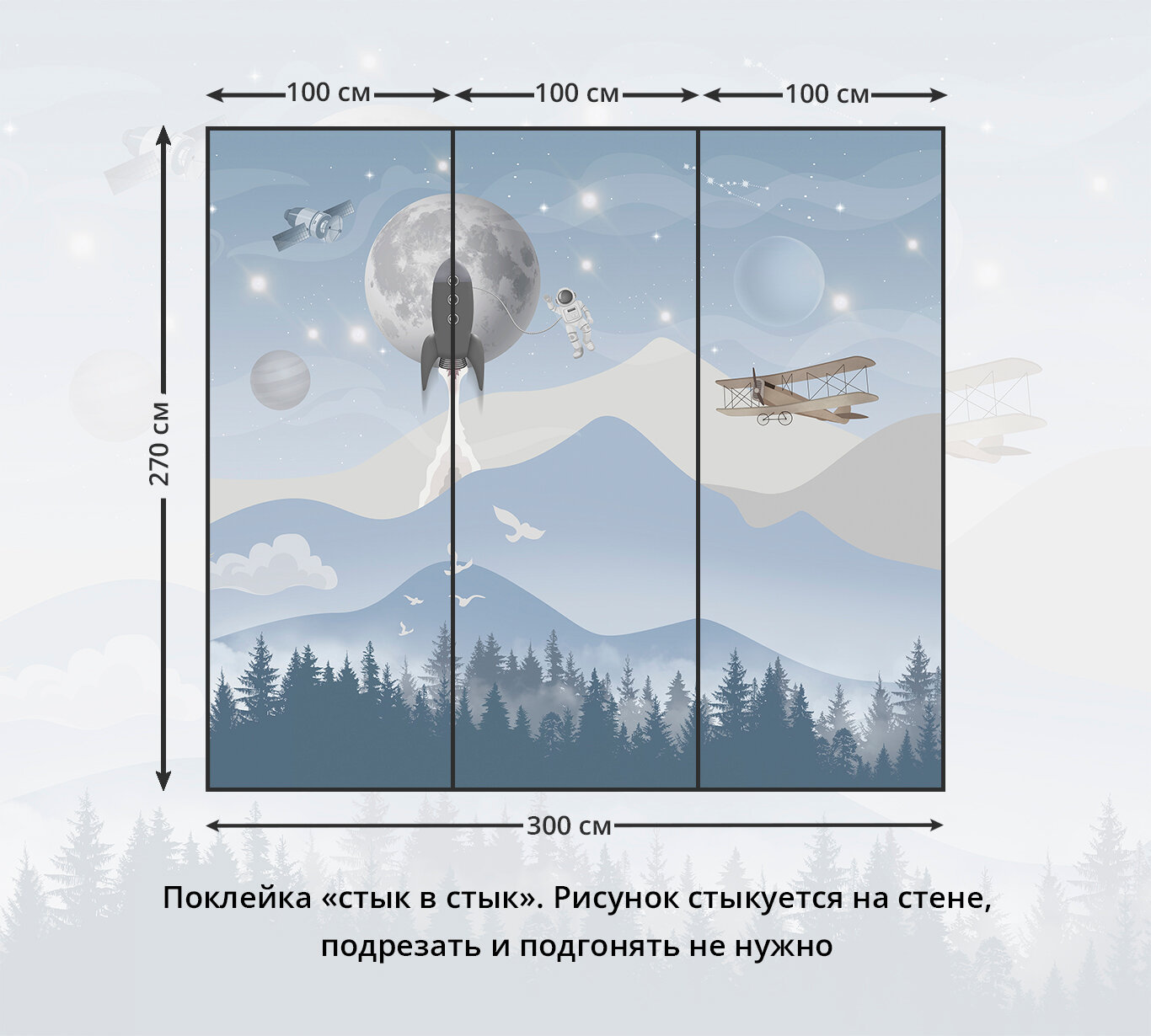 Фотообои на стену флизелиновые без винила детские Космос 300х270 см информация: