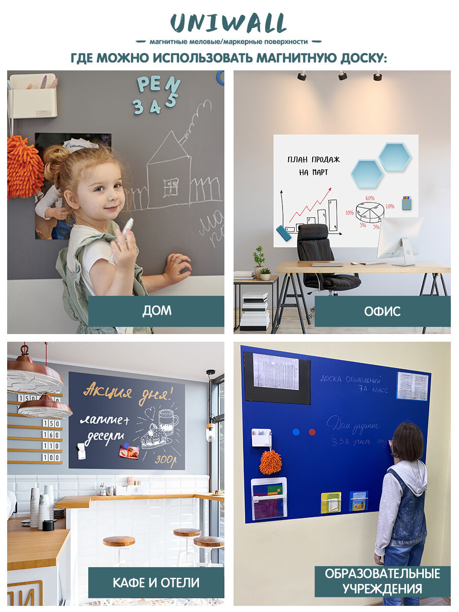 Отзывы на Магнитные меловые обои "UNIWALL" 120 х200 см, индиго, обои для детской комнаты/для кухни и для офиса
