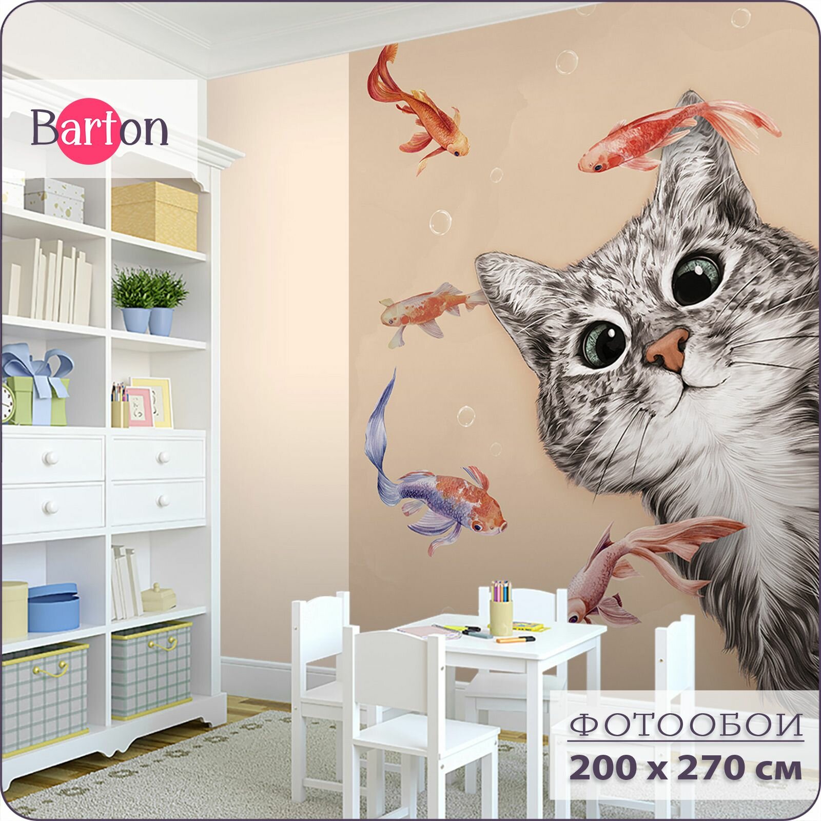 10 цен на Фотообои на стену флизелиновые 3d Детские Котенок Рыбки 200х270 см Bartonwall K299-B