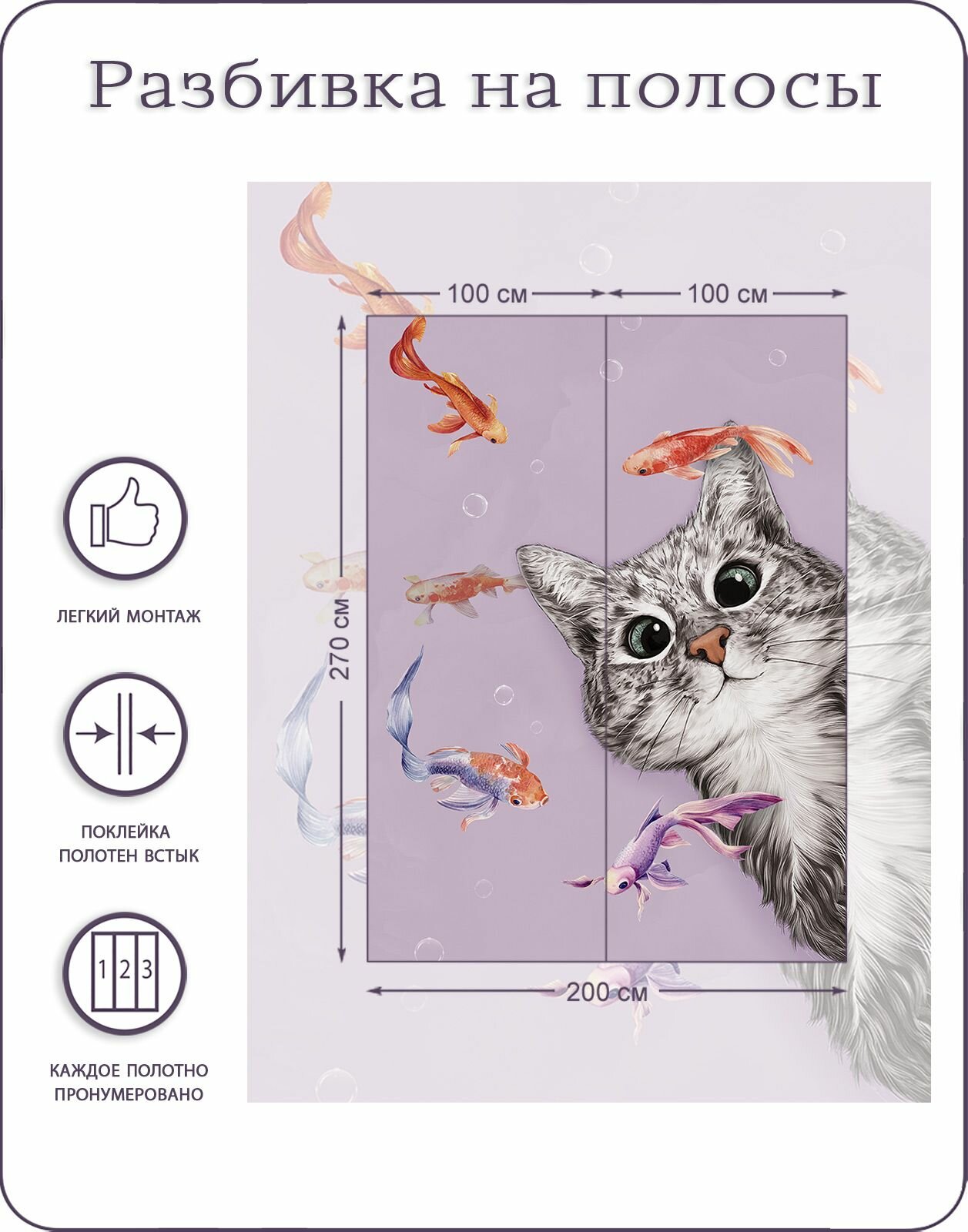 Отзывы на Фотообои на стену флизелиновые 3d Детские Котенок Рыбки 200х270 см Bartonwall K299