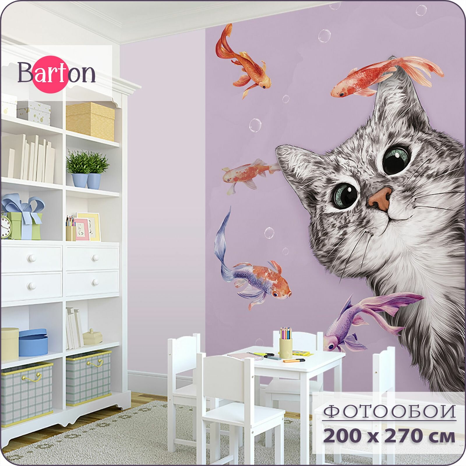 Фотообои на стену флизелиновые 3d Детские Котенок Рыбки 200х270 см Bartonwall K299 информация: