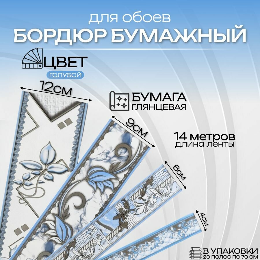 Бордюр для обоев (кант, филенка, фриз, молдинг, плинтус) бумажный цвет голубой 4 см. информация: