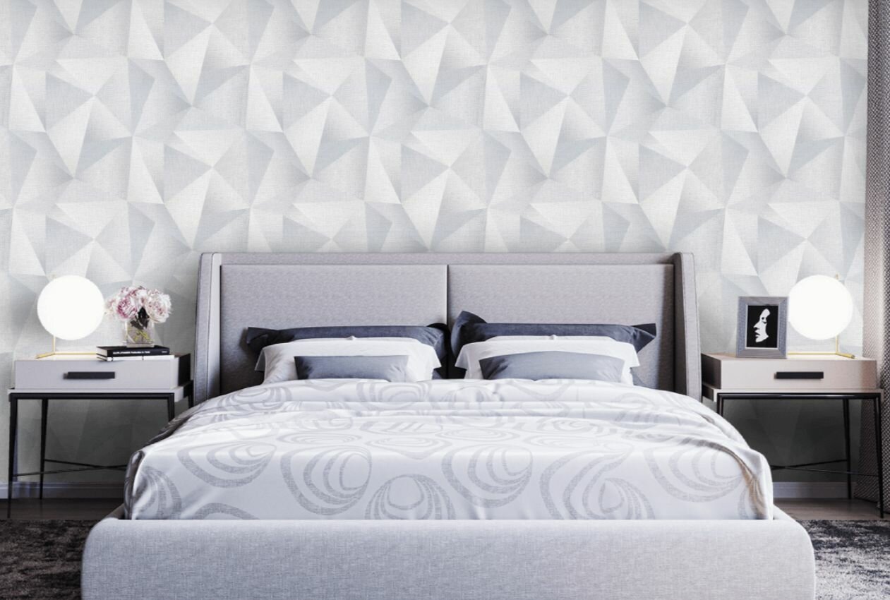 Обои 3D виниловые в комнату с рисунком моющиеся Треугольники-14 серые 1,06*10м текстиль холст матовый информация: