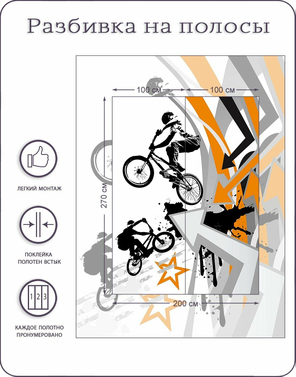 10 цен на Фотообои на стену флизелиновые 3d Для подростка Граффити Велосипед 200х270 см Bartonwall K207-O