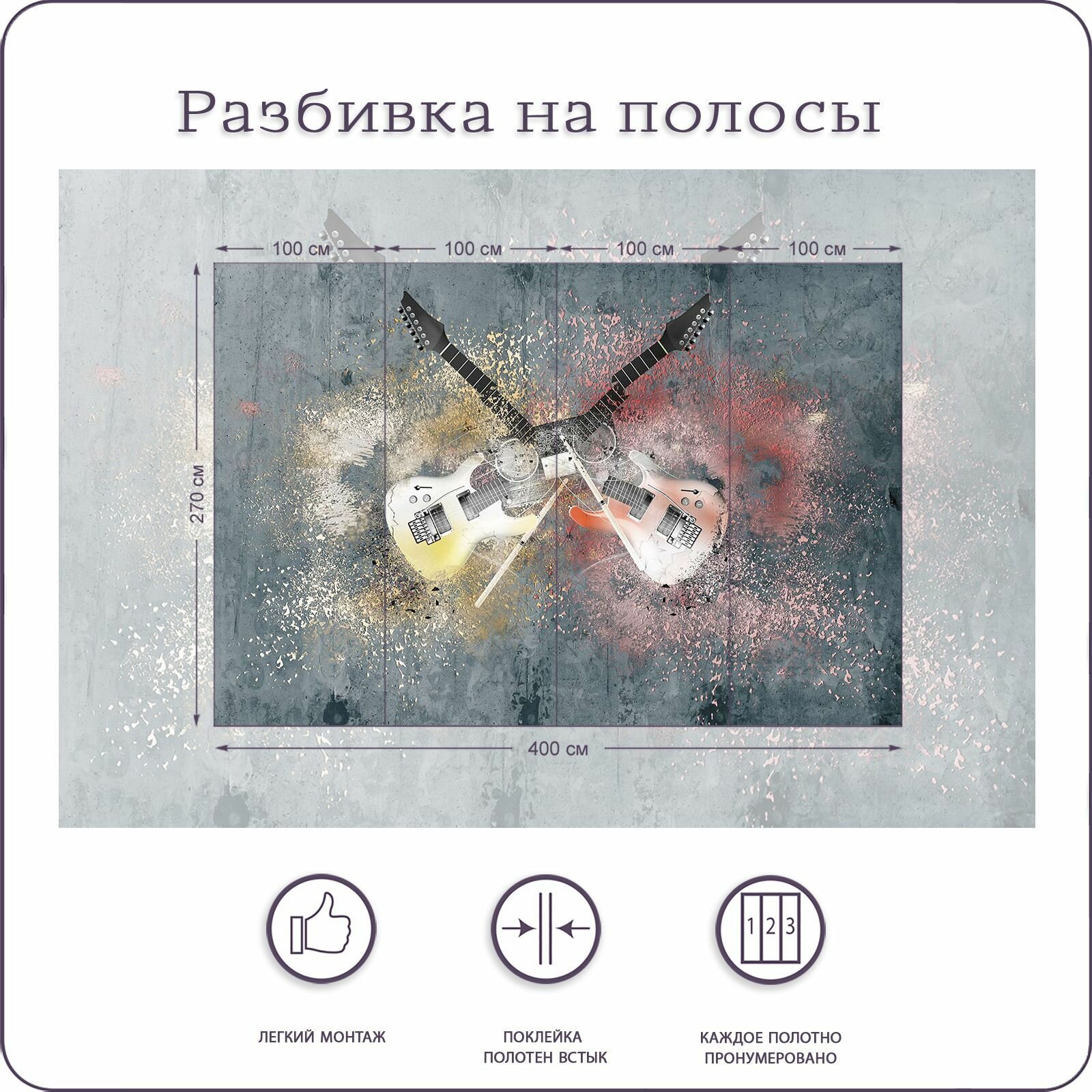 Фотообои на стену флизелиновые 3d Для подростка Граффити Гитары 400х270 см Bartonwall K115 информация: