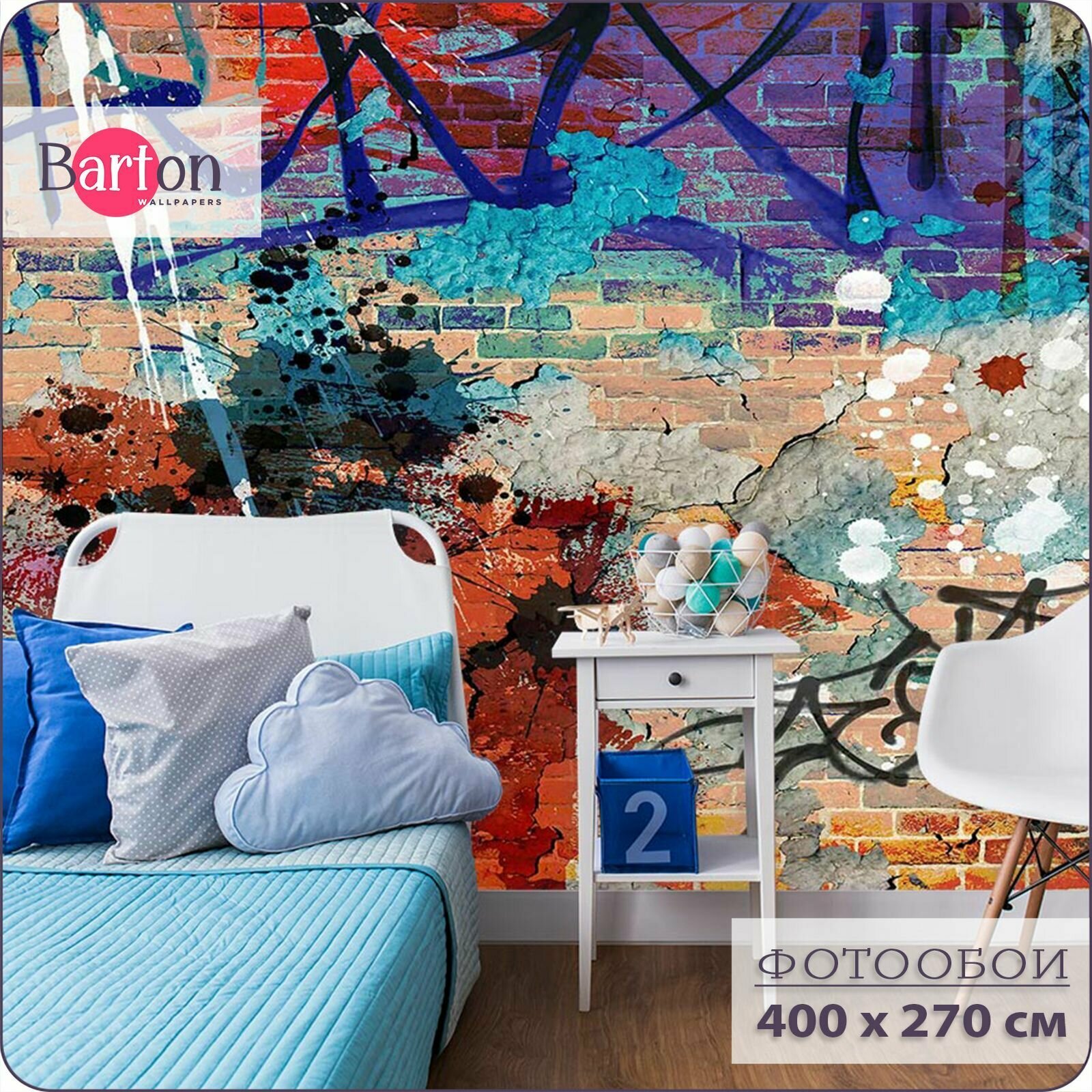 Фотообои на стену флизелиновые 3d Лофт Стена Граффити 400х270 см Bartonwall K198 информация: