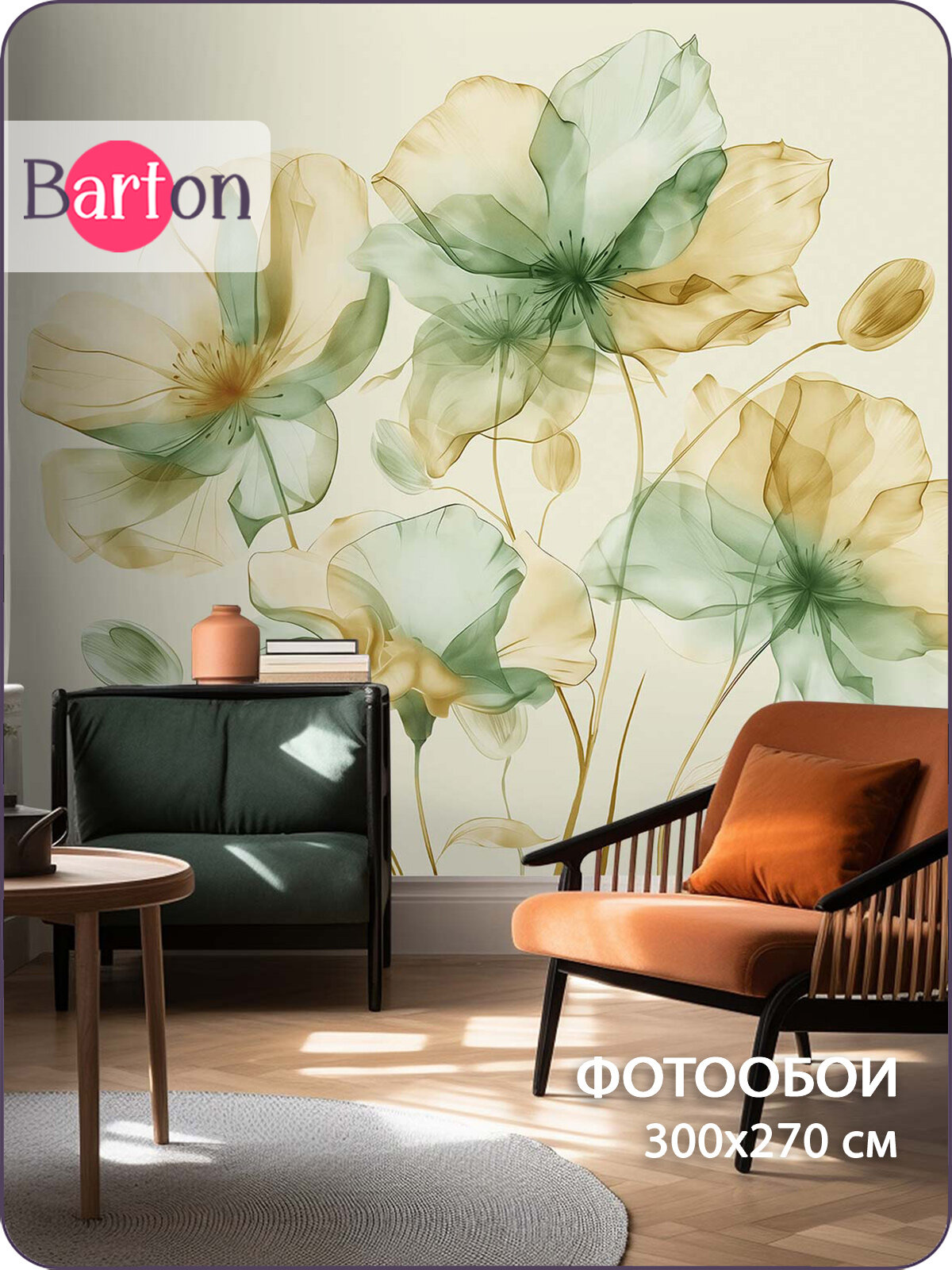 Отзывы на Фотообои на стену флизелиновые 3d Цветы Акварель Силуэт 300х270 см Bartonwall F098-Z