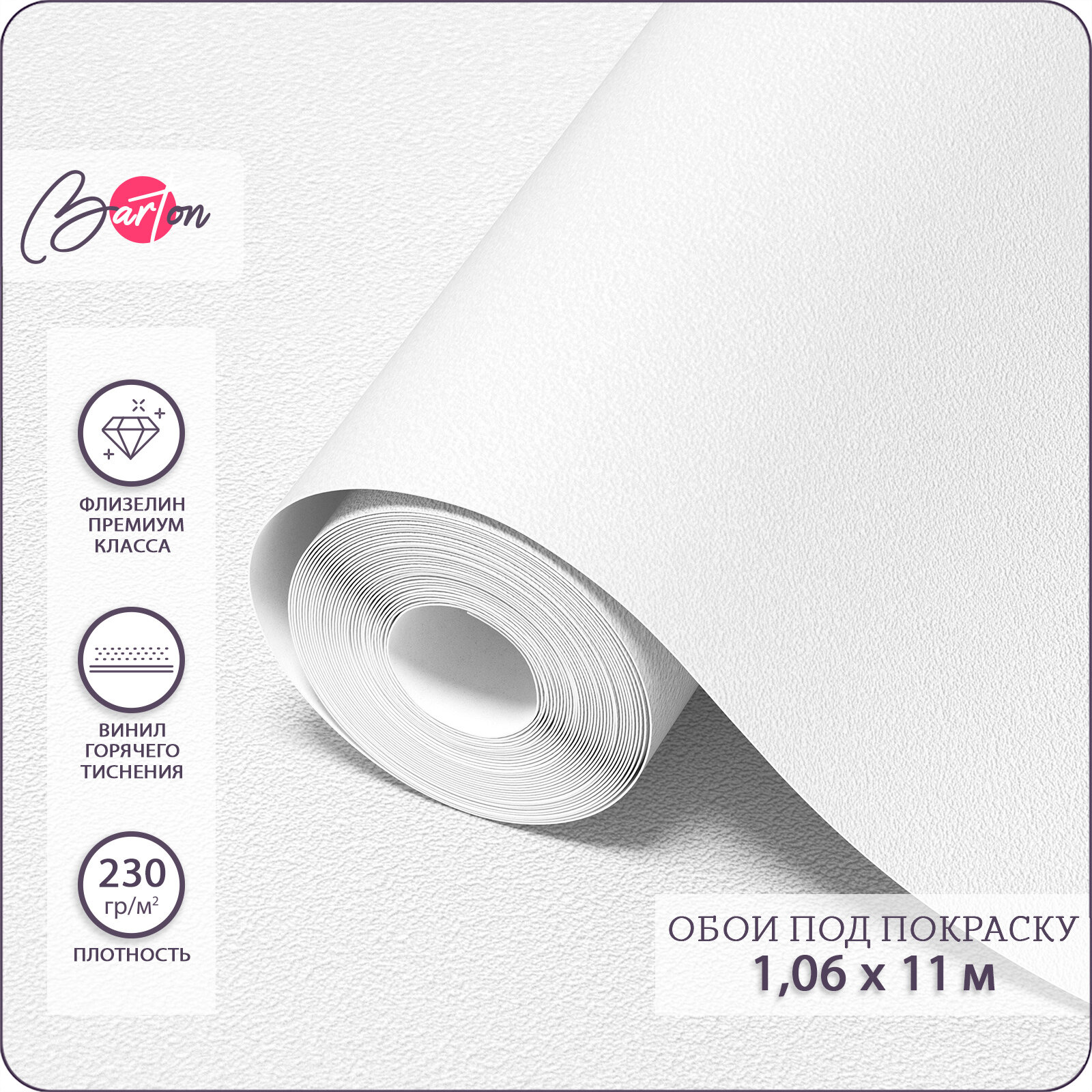 Обои флизелиновые 1,06 х 11 м виниловые под покраску белые Bartonwall B010 информация: