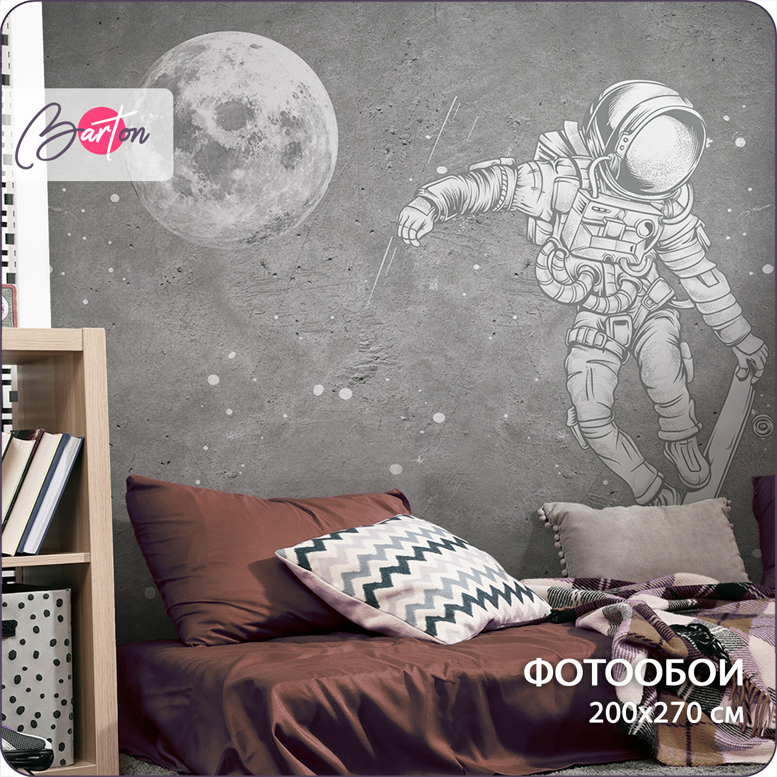 10 цен на Фотообои на стену флизелиновые 3d Для подростка Лофт Космонавт на скейте 200х270 см Bartonwall M081-G