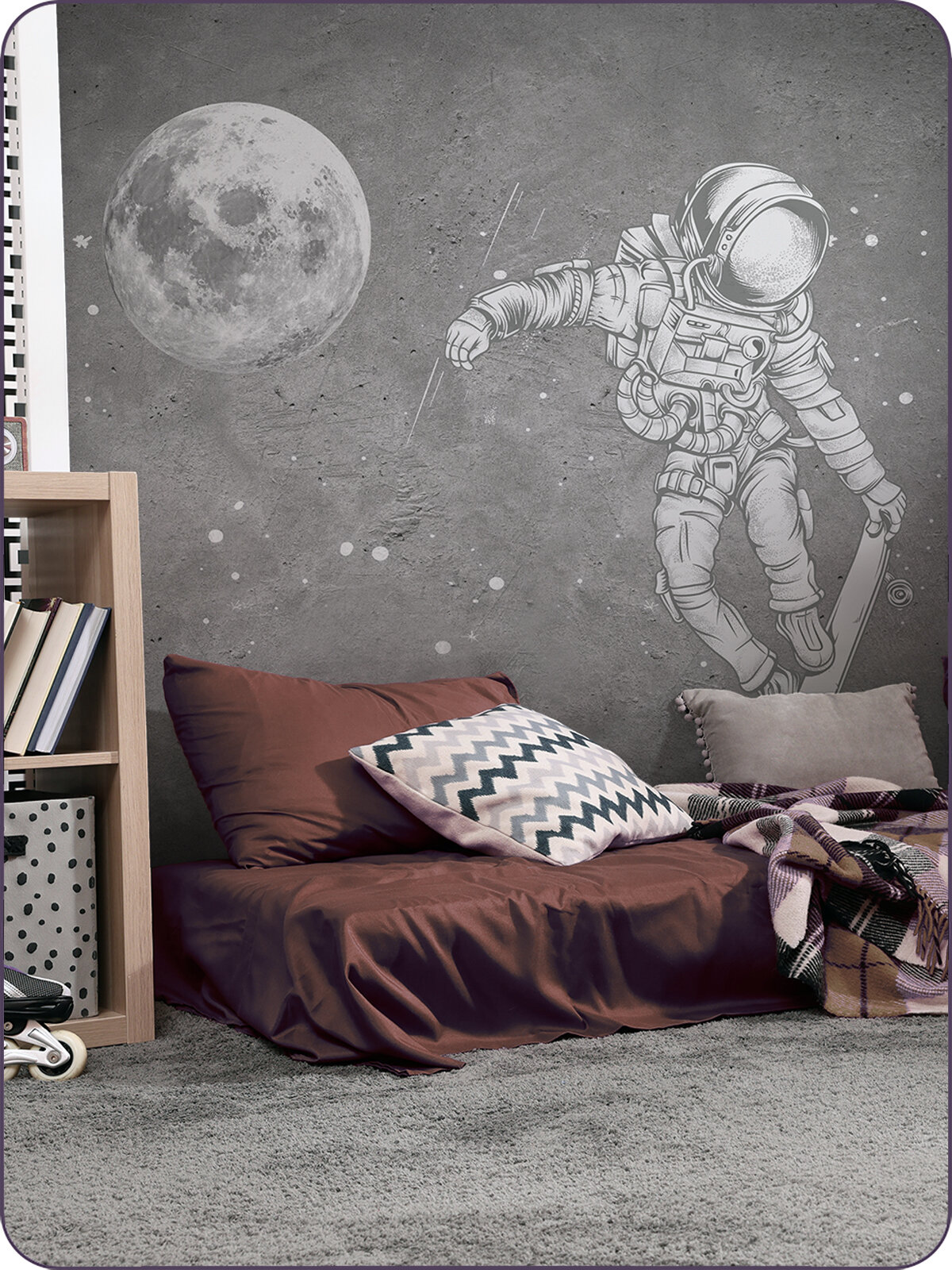 Фотообои на стену флизелиновые 3d Для подростка Лофт Космонавт на скейте 300х270 см Bartonwall M081 6 900 ₽