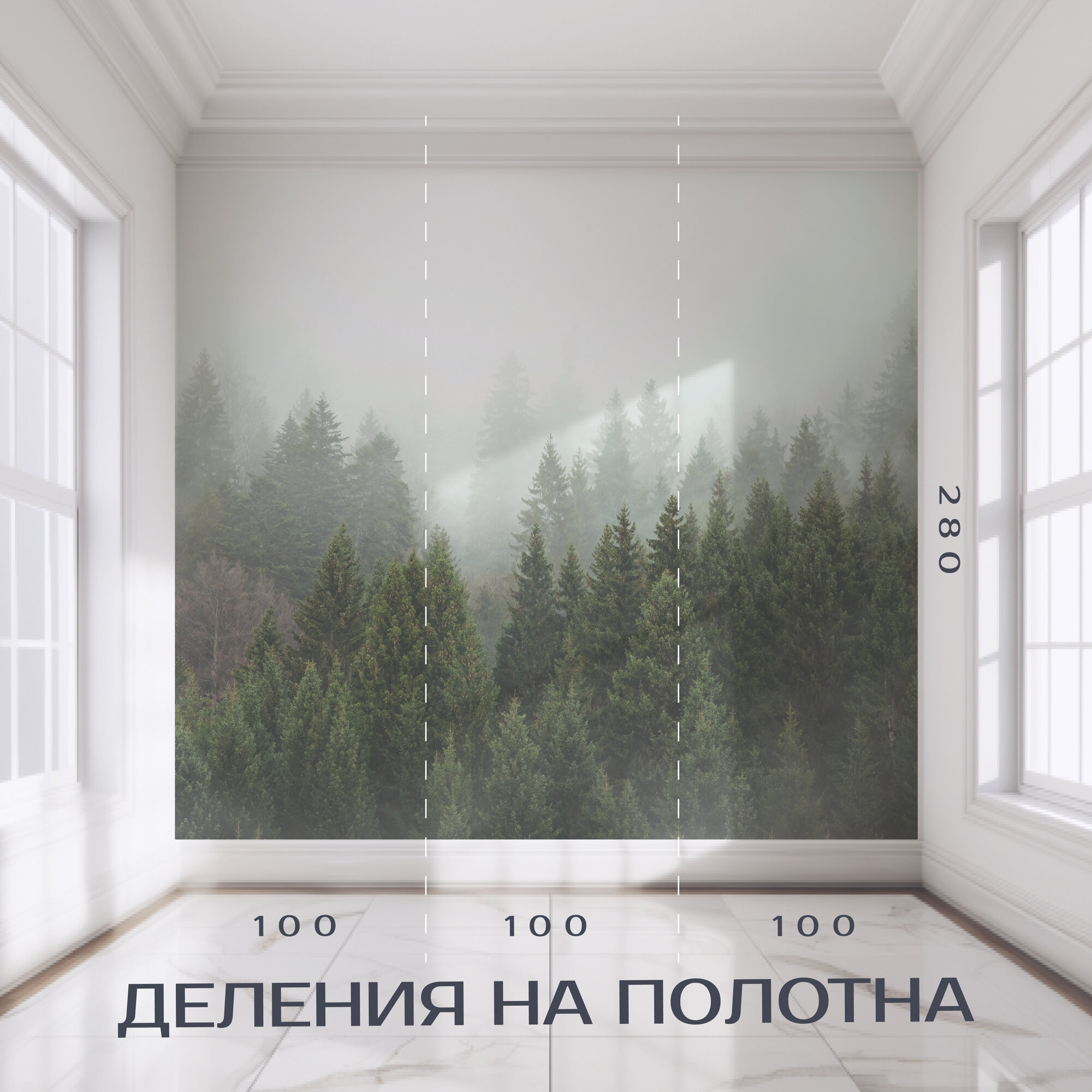 Фотообои 3д на стену 300х280 Лес в тумане информация: