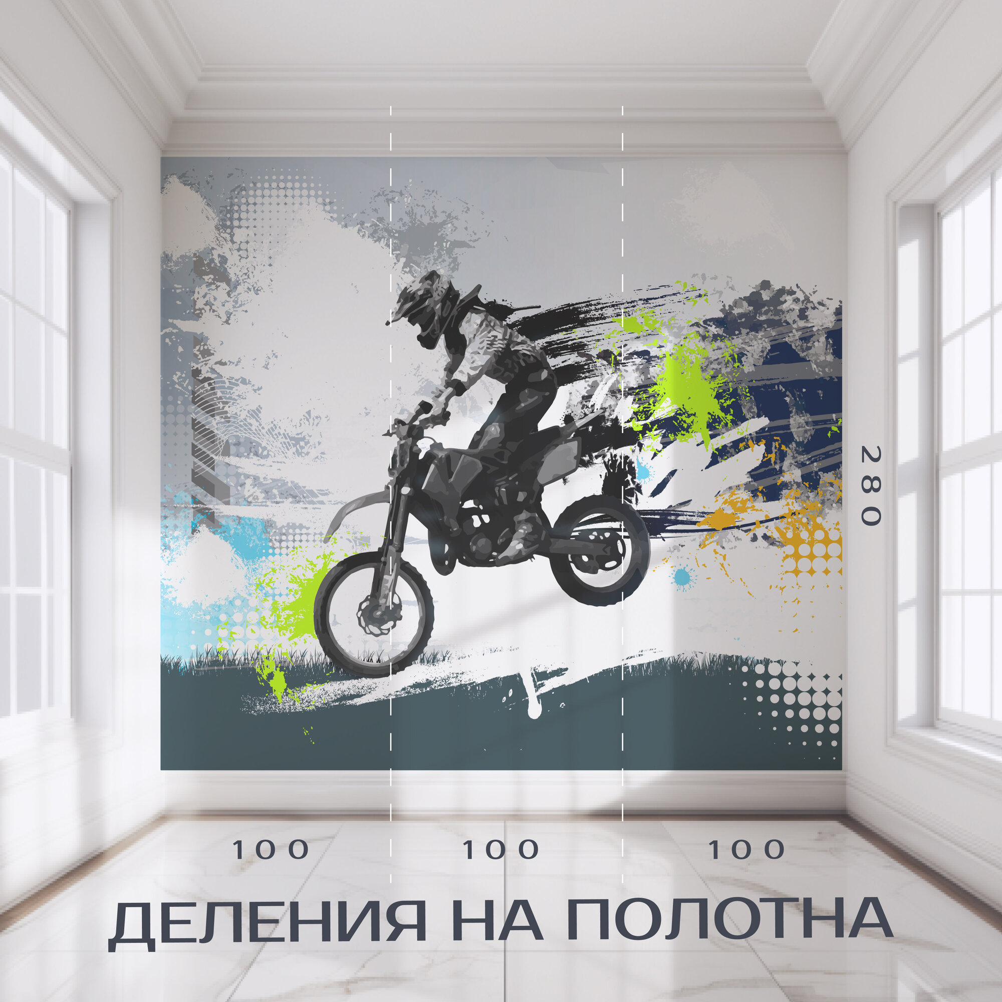 Фотообои 3д на стену 300х280 Мотоцикл питбайк спорт информация: