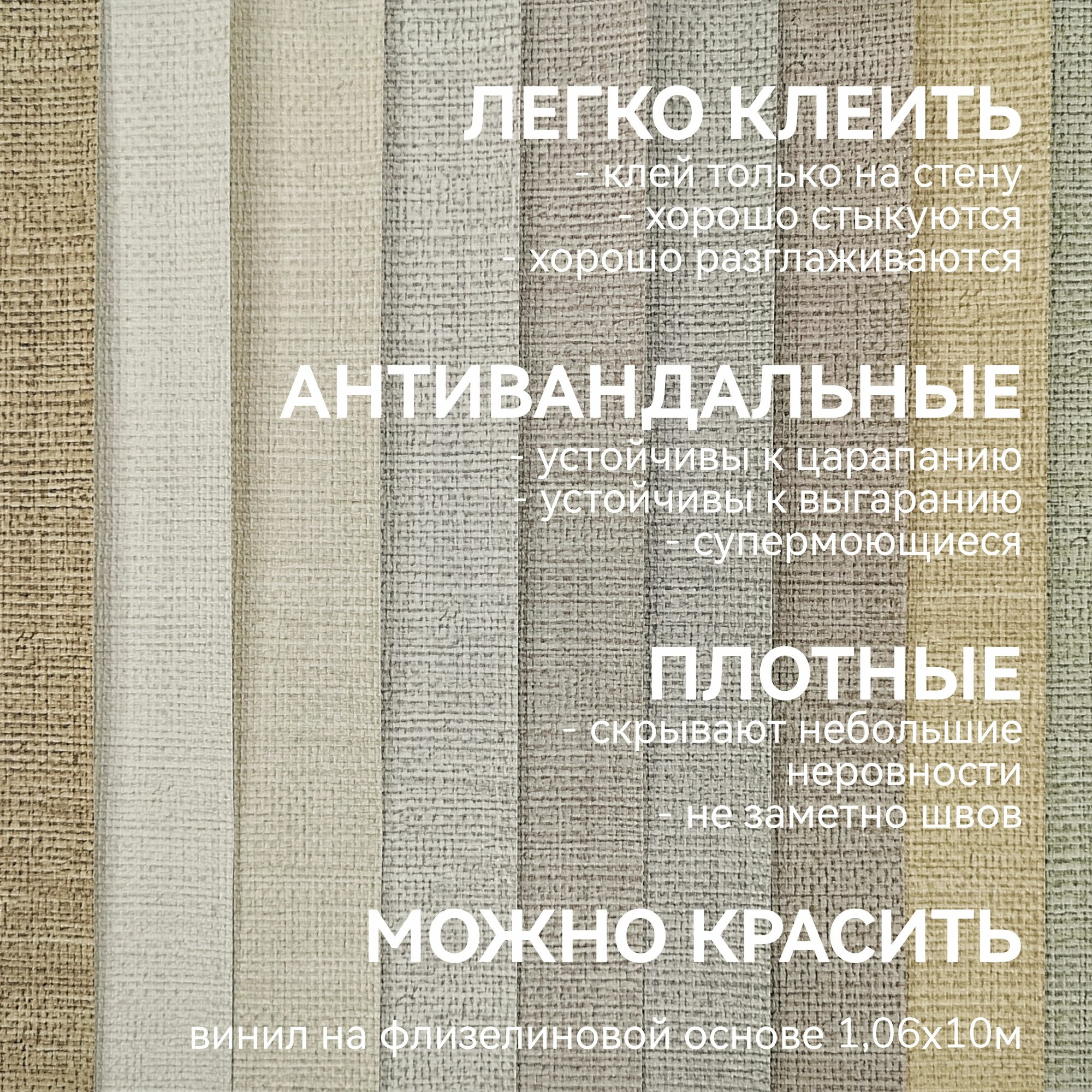 Обои флизелиновые 1.06, антивандальные, матовые под рогожку, моющиеся, можно красить 2 767 ₽