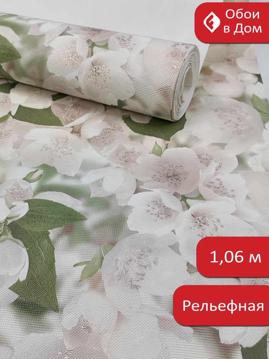 Виниловые обои Elysium "Ясмин" E107201, на флизелиновой основе, цветы, зеленые, моющиеся, 1,06 х 10 м информация: