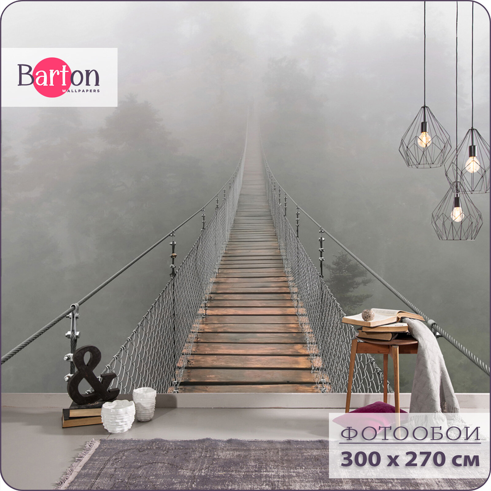 Фотообои на стену флизелиновые 3d Мост Туманный лес 300х270 см Bartonwall N009 информация: