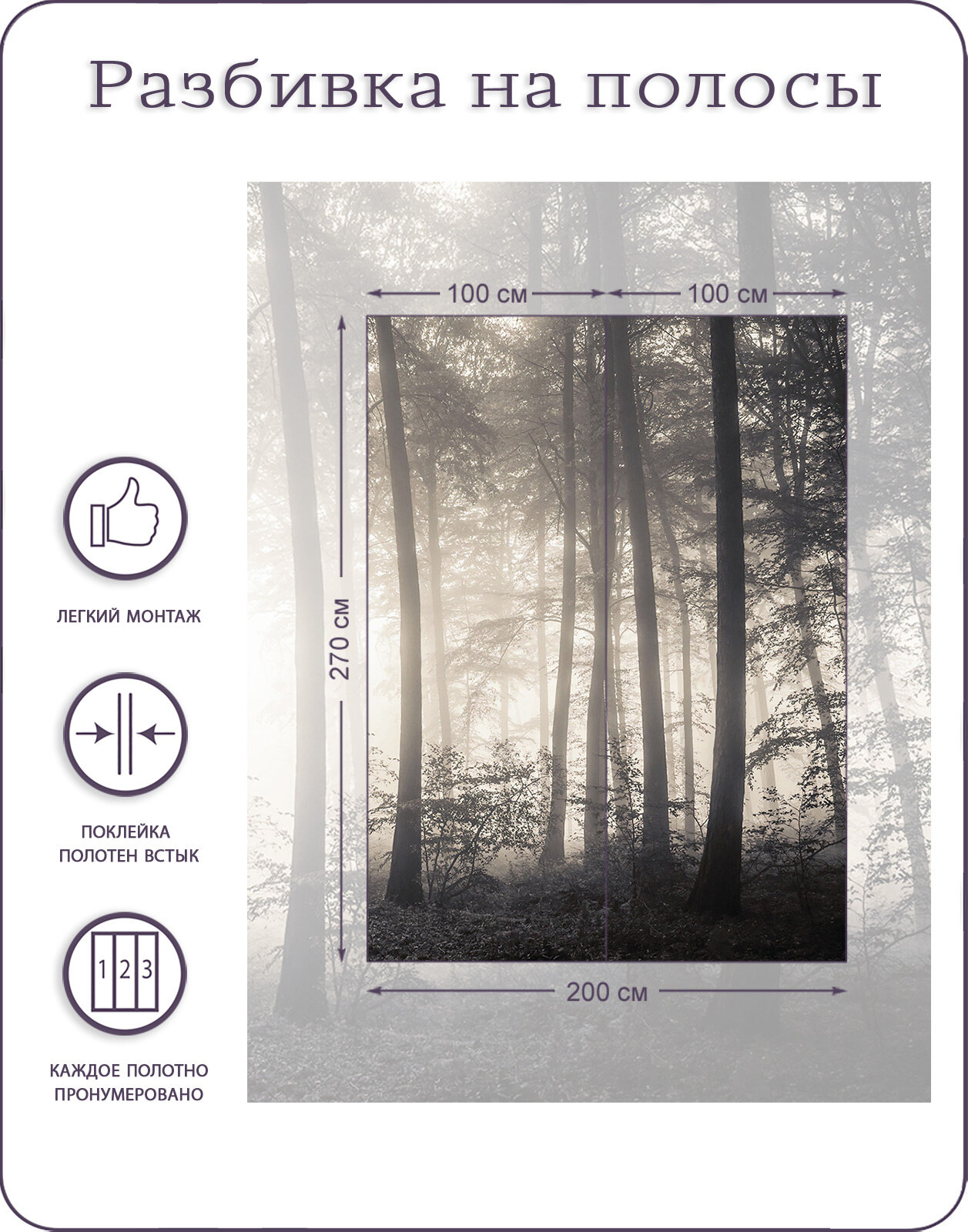 Отзывы на Фотообои на стену флизелиновые 3d Природа Туманный лес 200х270 см Bartonwall N018