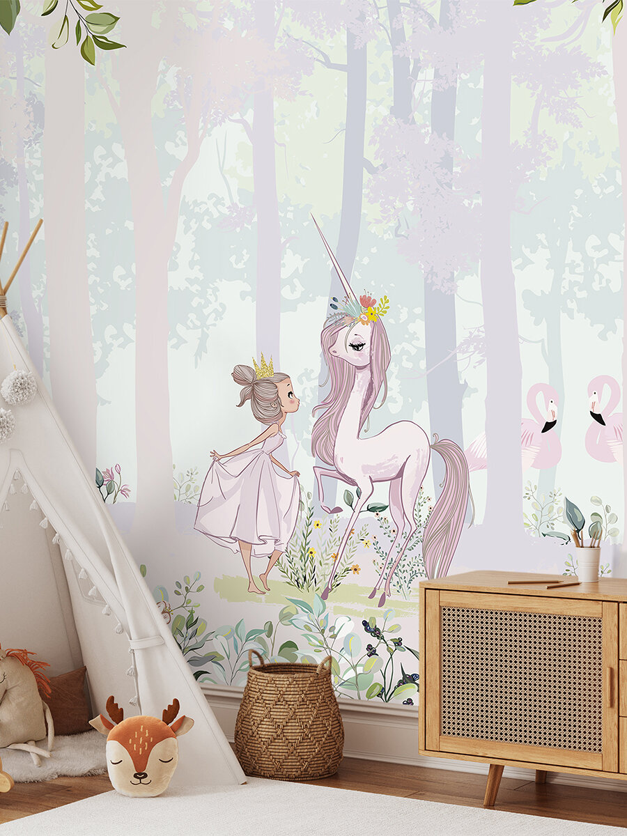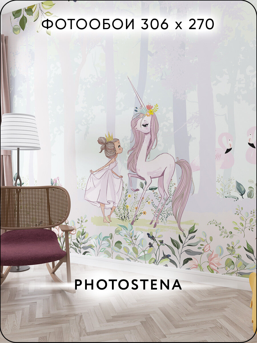Фотообои на стену флизелиновые встык PHOTOSTENA Принцесса и единорог 3,06 x 2,7 м 8,262 м2 информация:
