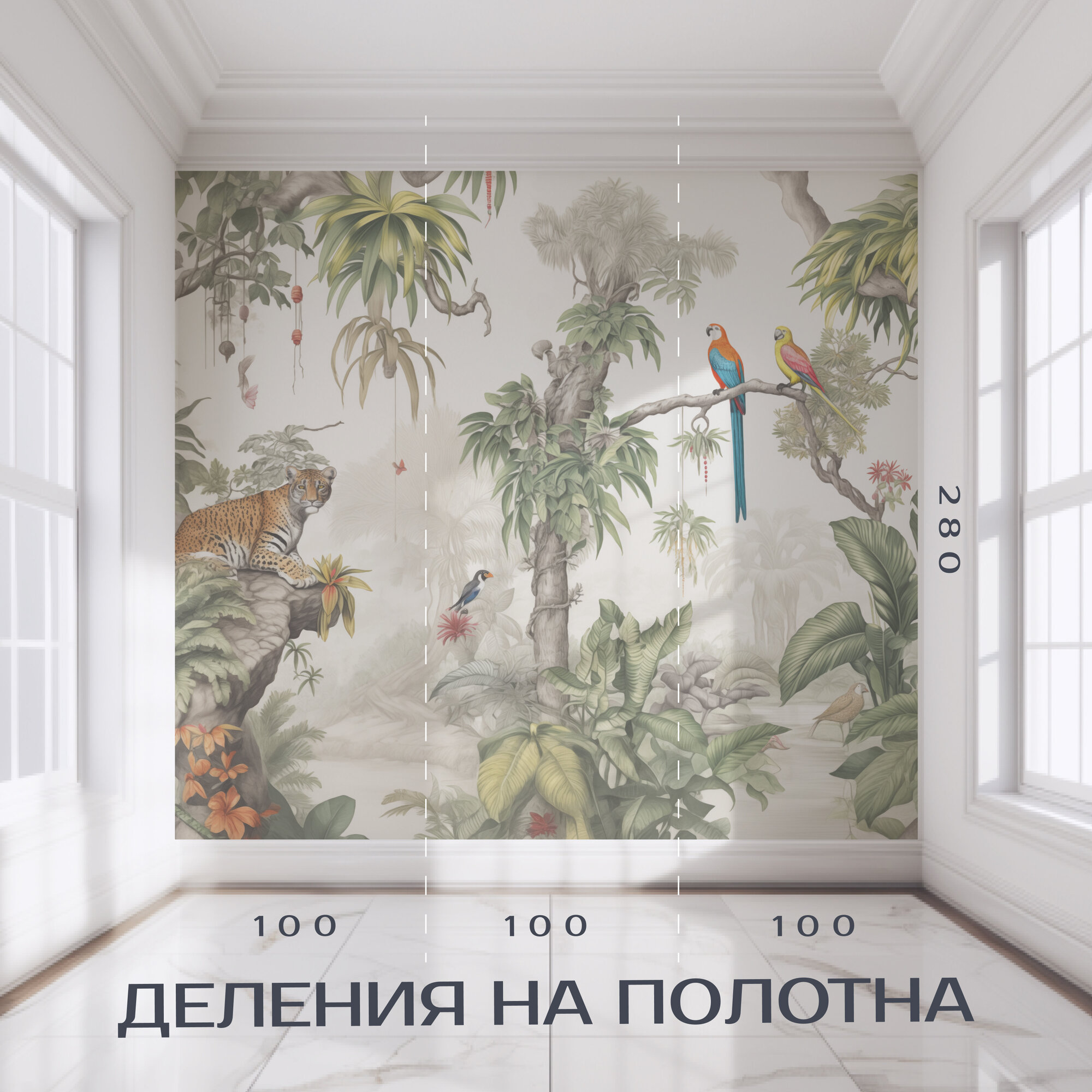 Отзывы на Фотообои на стену 300х280 Тропический лес с листьями и животными.