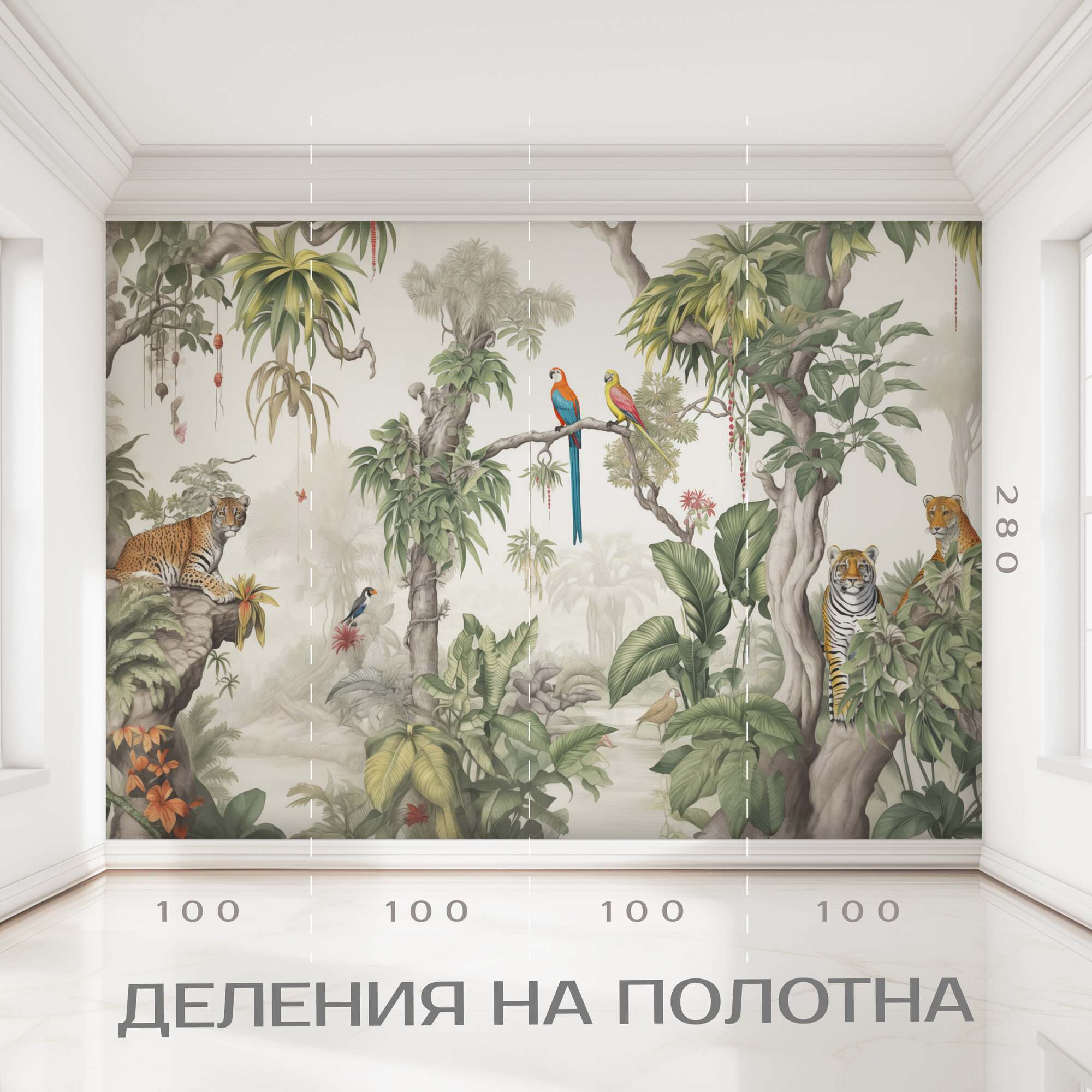 Отзывы на Фотообои на стену 400х280 Тропический лес с листьями и животными.