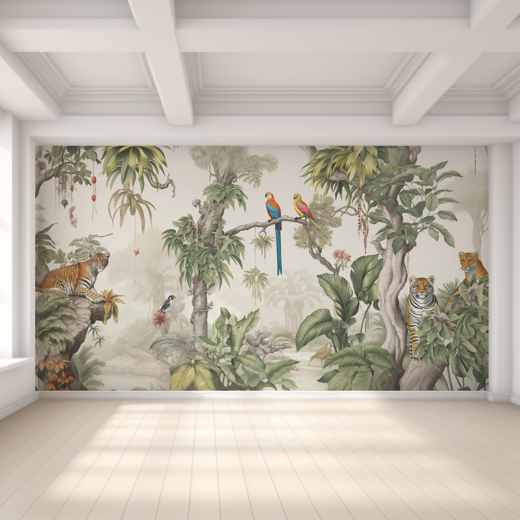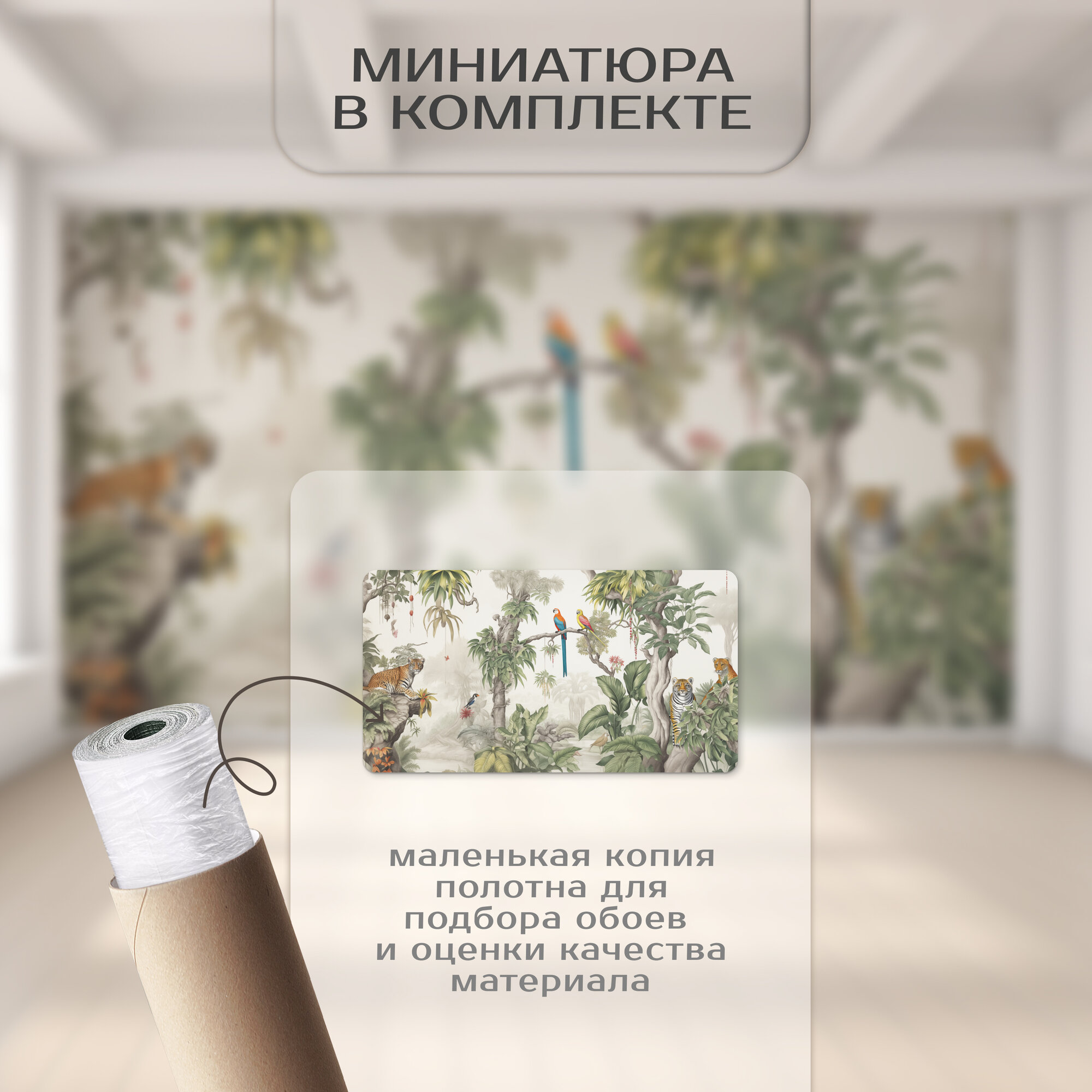 Отзывы на Фотообои на стену 500х280 Тропический лес с листьями и животными.