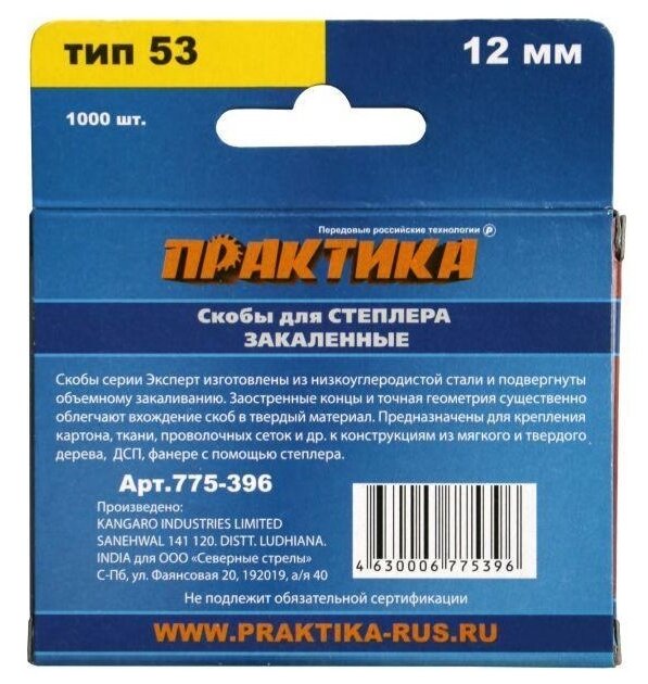 10 цен на Скобы для степлера, 12 мм, Тип 53, Серия эксперт, 1000шт ПРАКТИКА 775-396