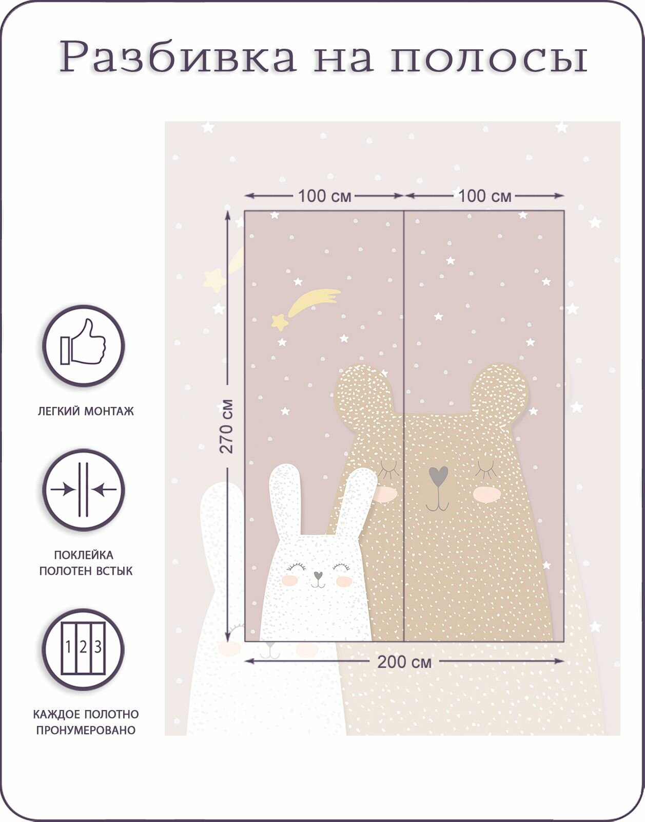 Фотообои на стену флизелиновые 3d Детские Животные Звезды 200х270 см Bartonwall K090-P информация: