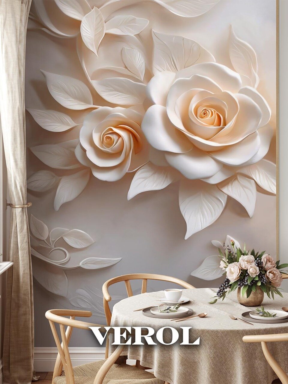 10 цен на Фотообои 3D флизелиновые VEROL "Цветы лепнина" 200*278 см, виниловое покрытие