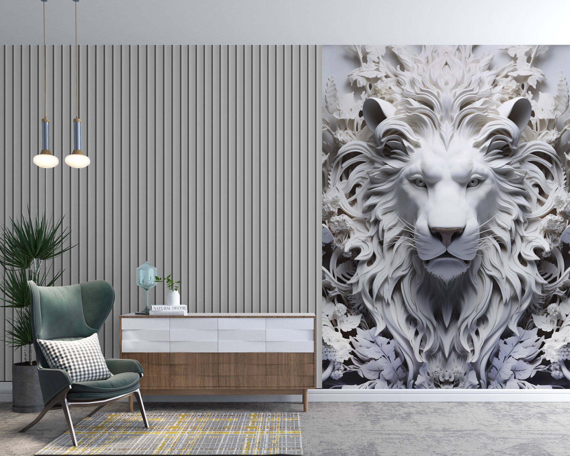 Отзывы на Фотообои "Лев 3D барельеф" 200 x 270 см, флизелин, винил, серый, 2 рул, 5,4 м²