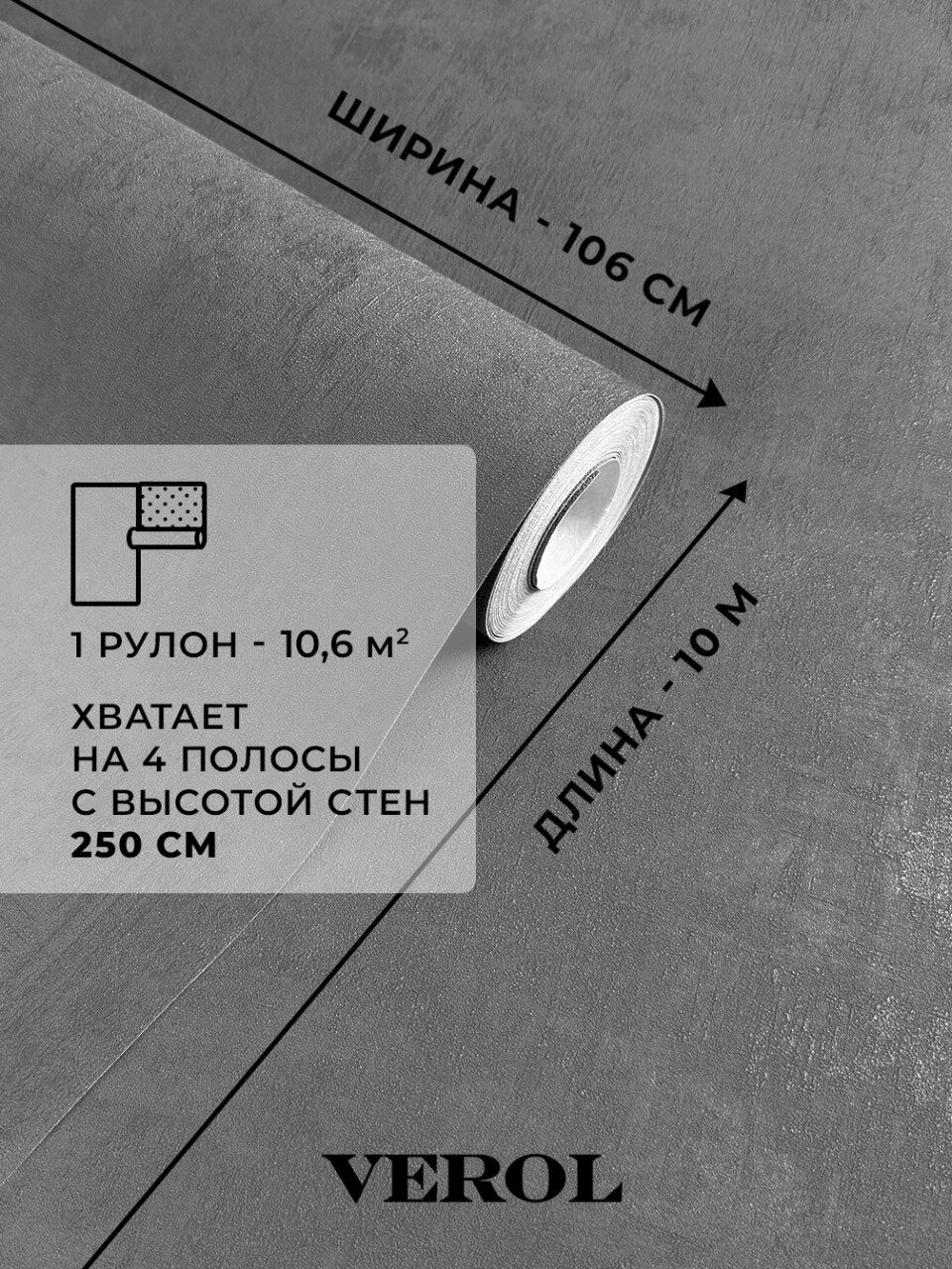 Обои флизелиновые VEROL "Графит", 1,06х10 м, 1 шт, моющиеся, износостойкие, водостойкие информация: