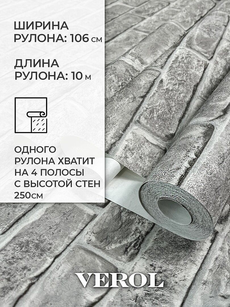 Обои флизелиновые VEROL "Серый под кирпич", 1,06х10 м, 1 шт, моющиеся, износостойкие, водостойкие информация: