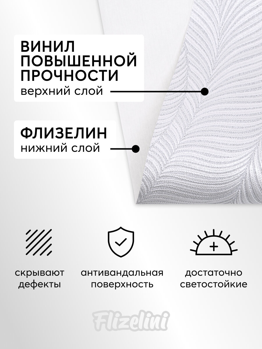 Обои антивандальные виниловые флизелиновые, листья белые, метровые, для гостиной, Foresta (Flizelini, 1860-11) 1 700 ₽