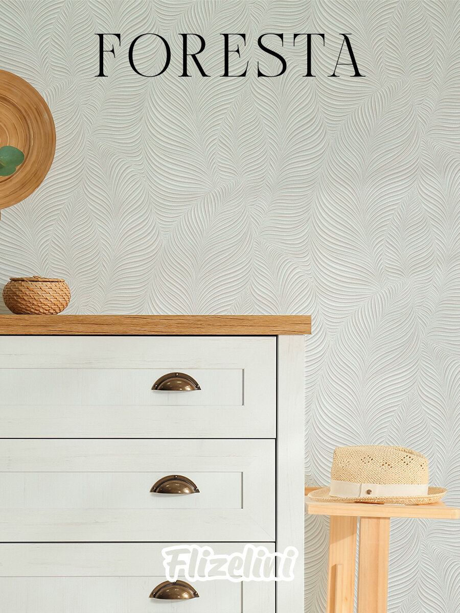 Обои антивандальные виниловые флизелиновые, листья белые, метровые, для гостиной, Foresta (Flizelini, 1860-11) 1 700 ₽