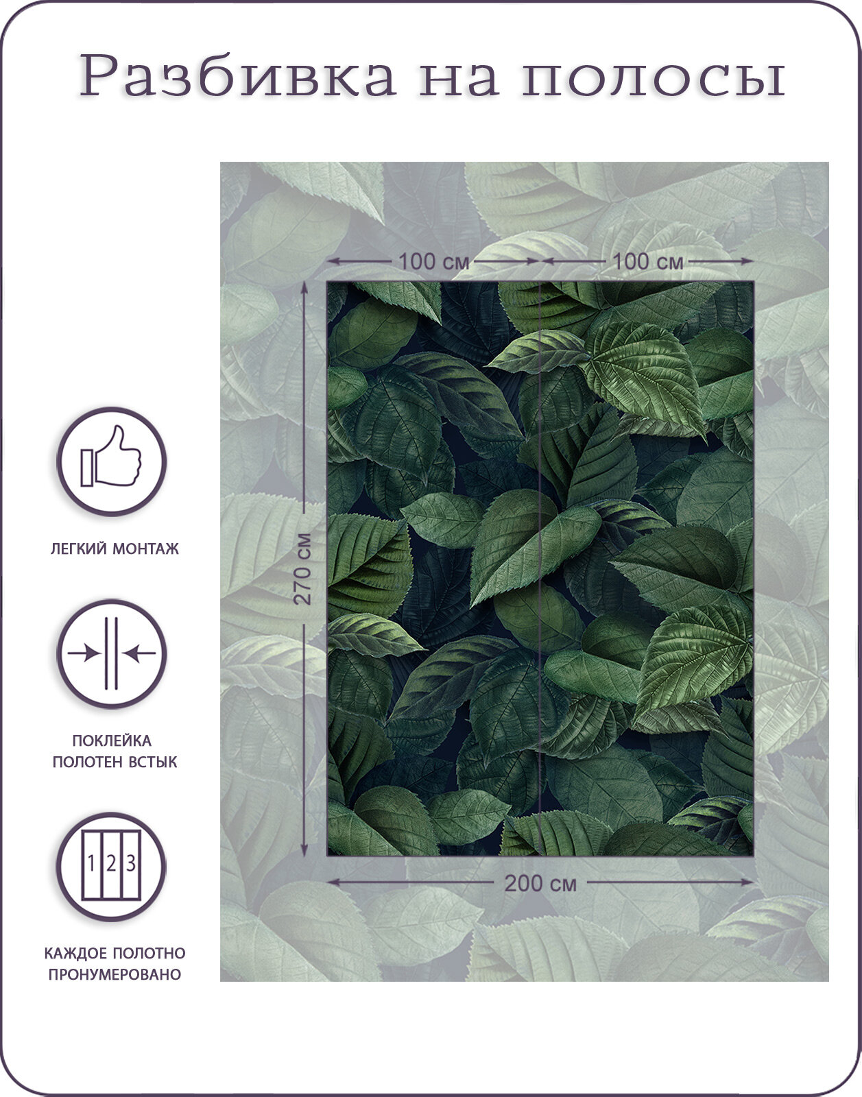 Фотообои на стену флизелиновые 3d Растения Листья 200х270 см Bartonwall M174 информация: