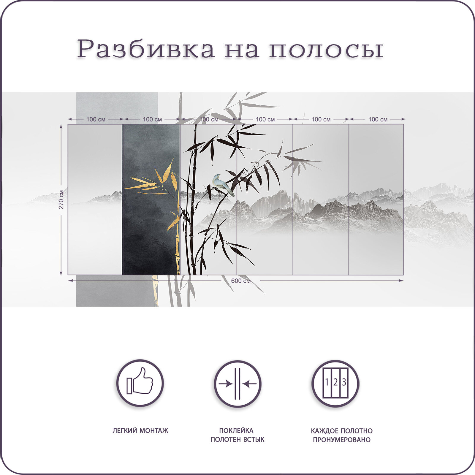 Фотообои на стену флизелиновые 3d Горы Птица Бамбук 600х270 см Bartonwall N121 информация:
