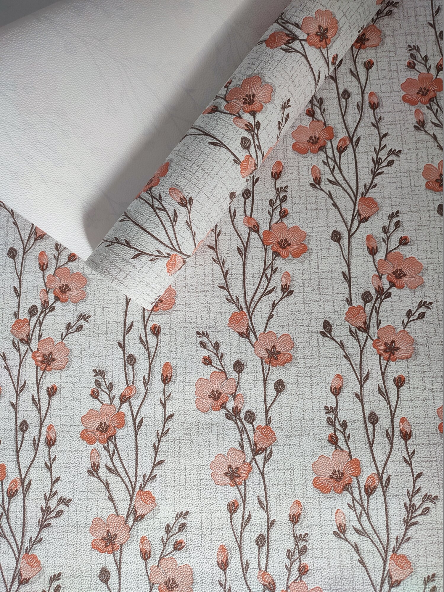 Лира к-8 обои бумажные, цветы, коралловый, светло-бежевый 53см информация: