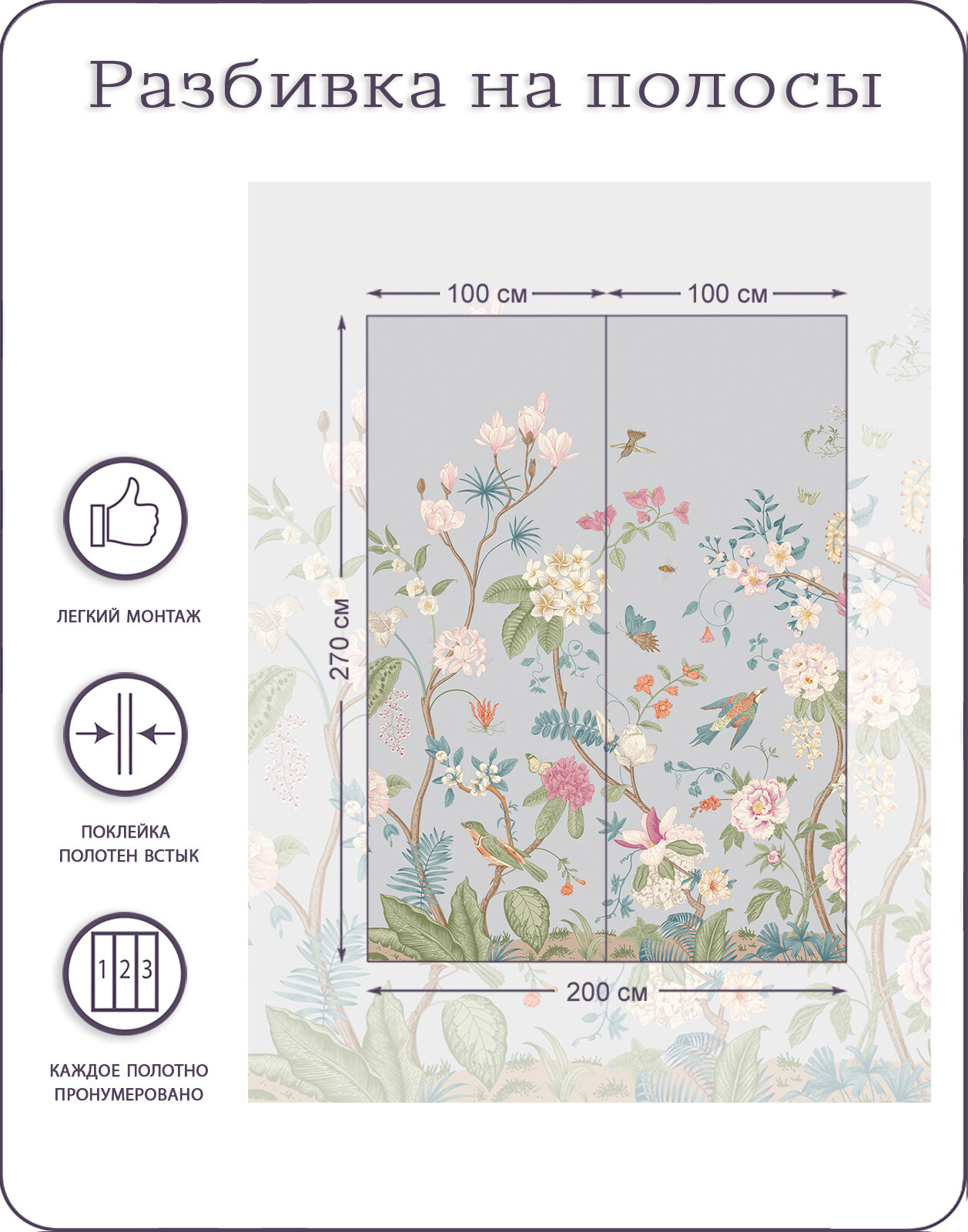 Фотообои на стену флизелиновые 3d Цветы Шенуазри 200х270 см Bartonwall F111-03 информация:
