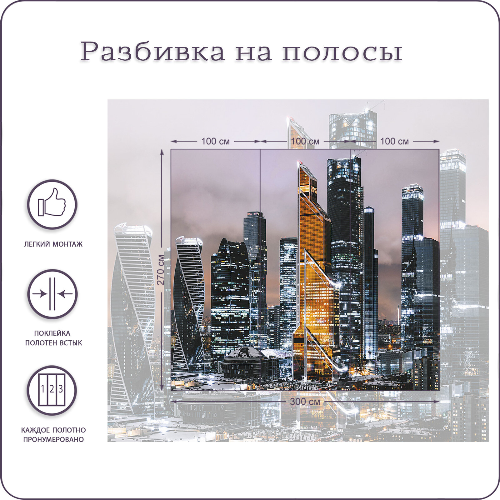 Фотообои на стену флизелиновые 3d Город Москва Сити 300х270 Bartonwall U007 информация: