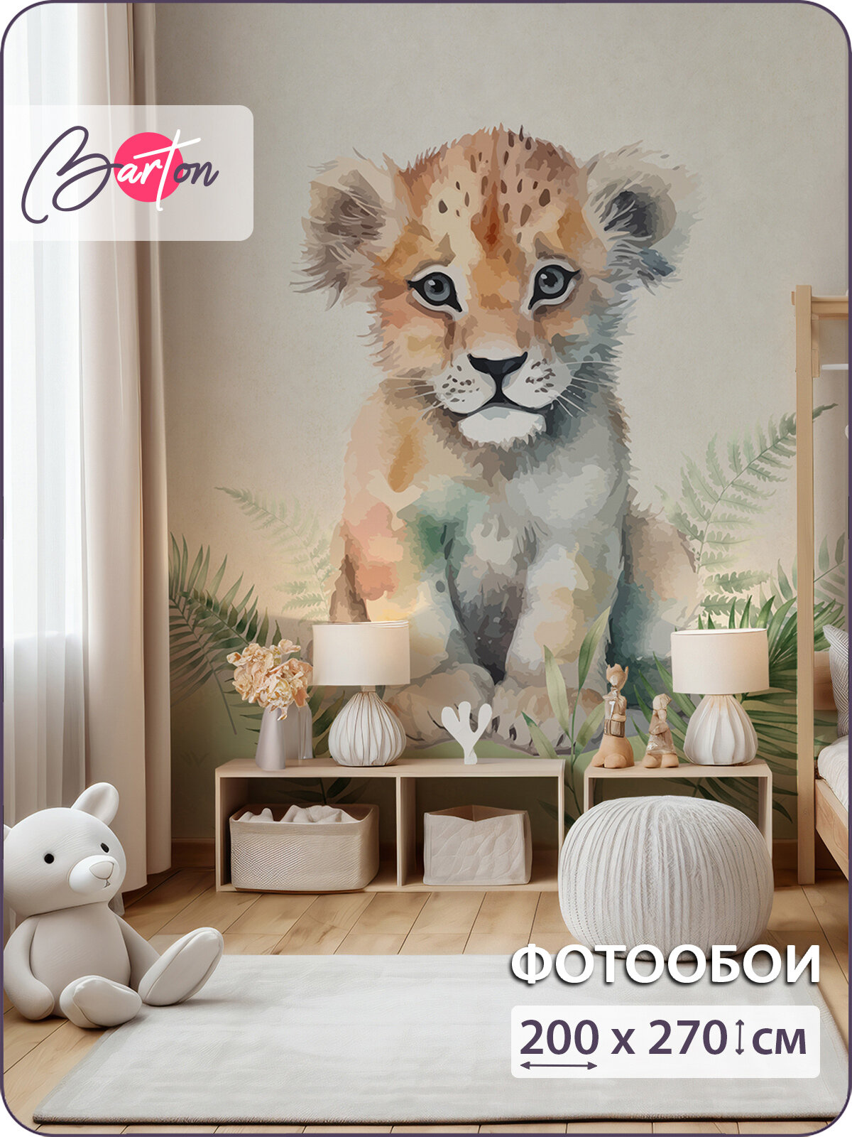 10 цен на Фотообои на стену флизелиновые 3d Детские Львенок 200х270 см Bartonwall K322_B