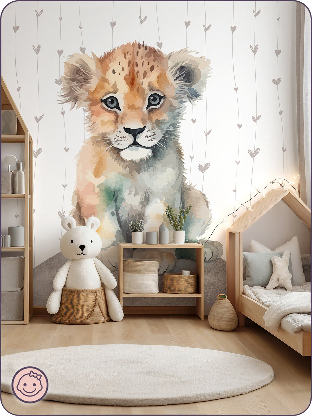 Фотообои на стену флизелиновые 3d Детские Львенок 300х270 см Bartonwall K322 информация: