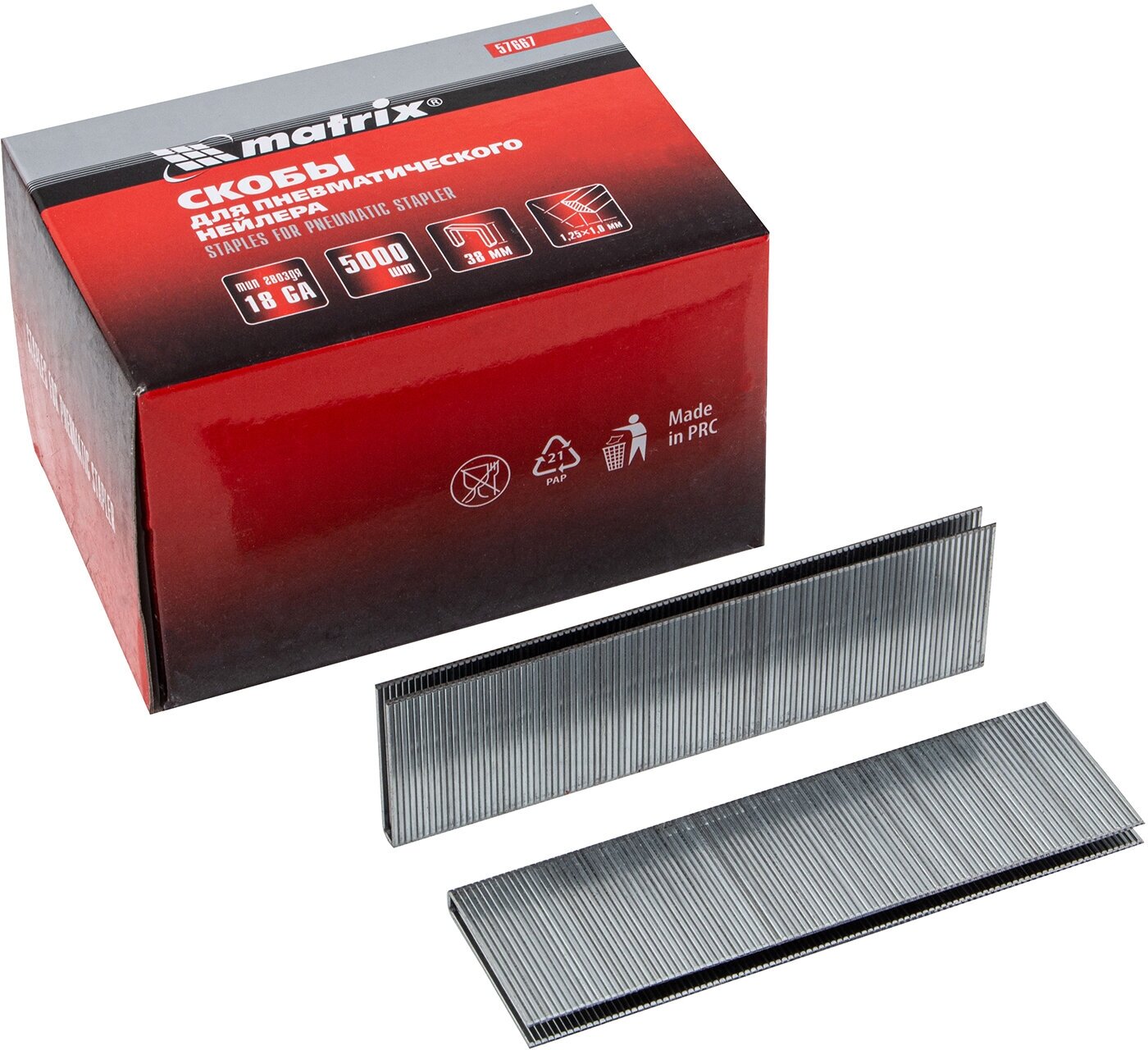 MATRIX Скобы для пневматического степлера 18GA, 1,25 х 1 мм, длина 38 мм ширина 5,7 мм, 5000 шт Matrix, ( 57667 )