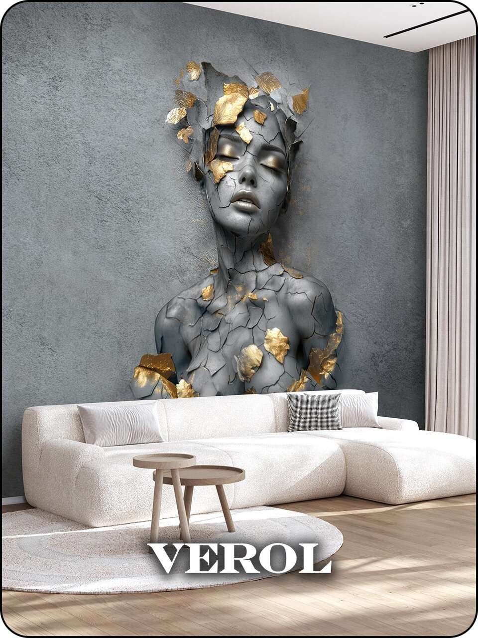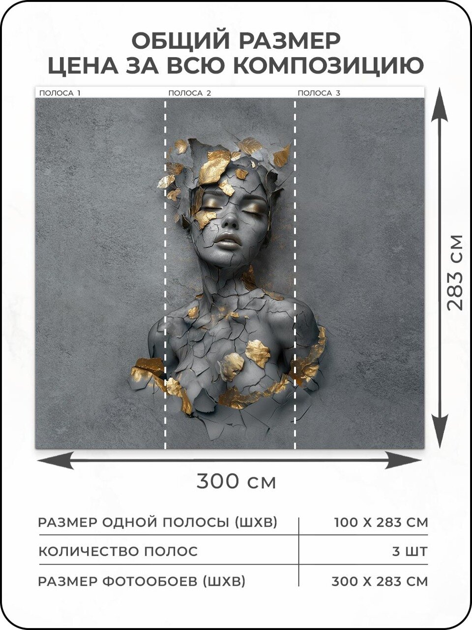 Фотообои 3D флизелиновые VEROL "Девушка, серый барельеф с золотом" 300*283 см, виниловое покрытие 5 999 ₽