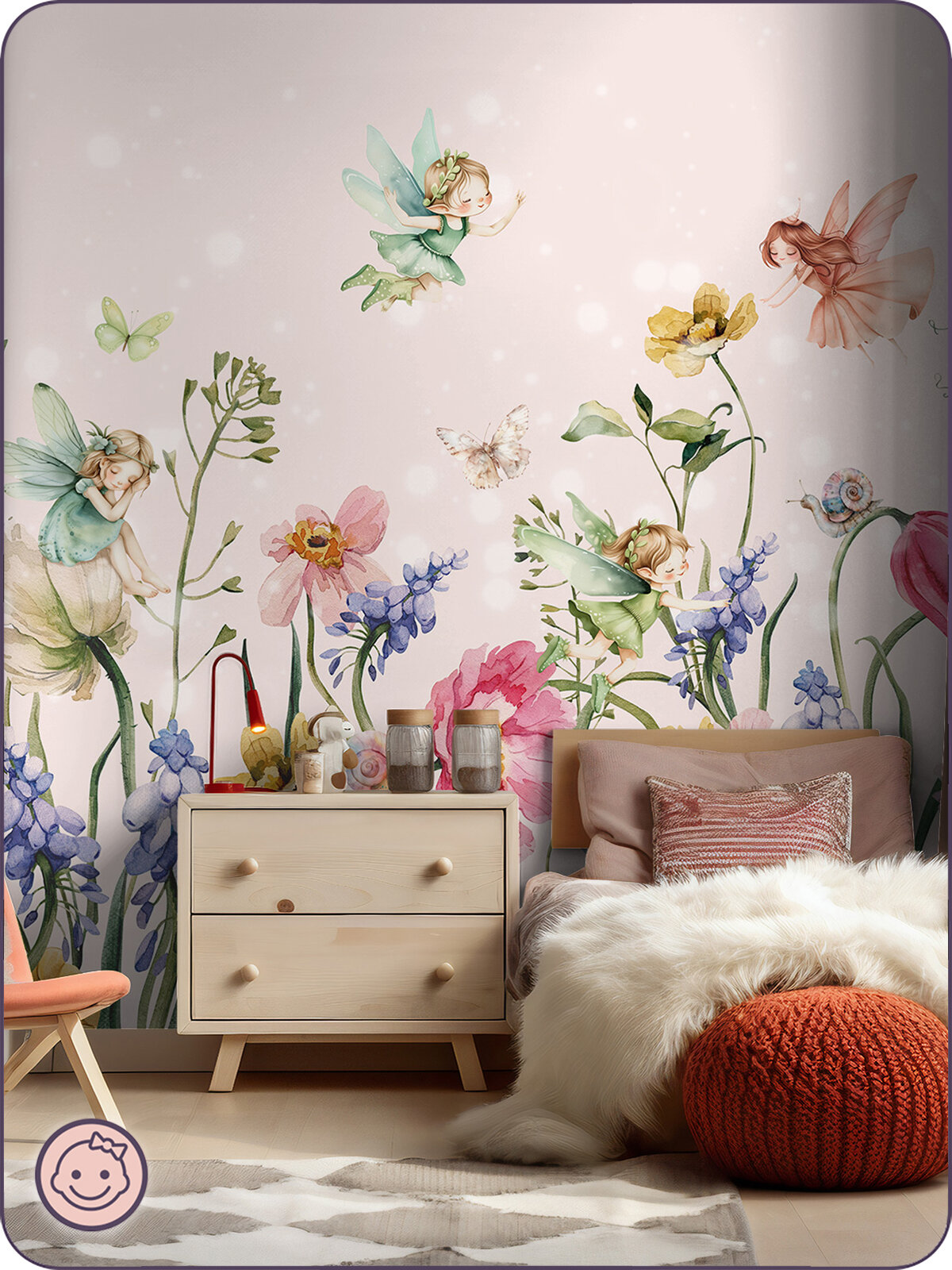 10 цен на Фотообои на стену флизелиновые 3d Детские Для девочки Цветы Феи 200х270 см Bartonwall K310-P