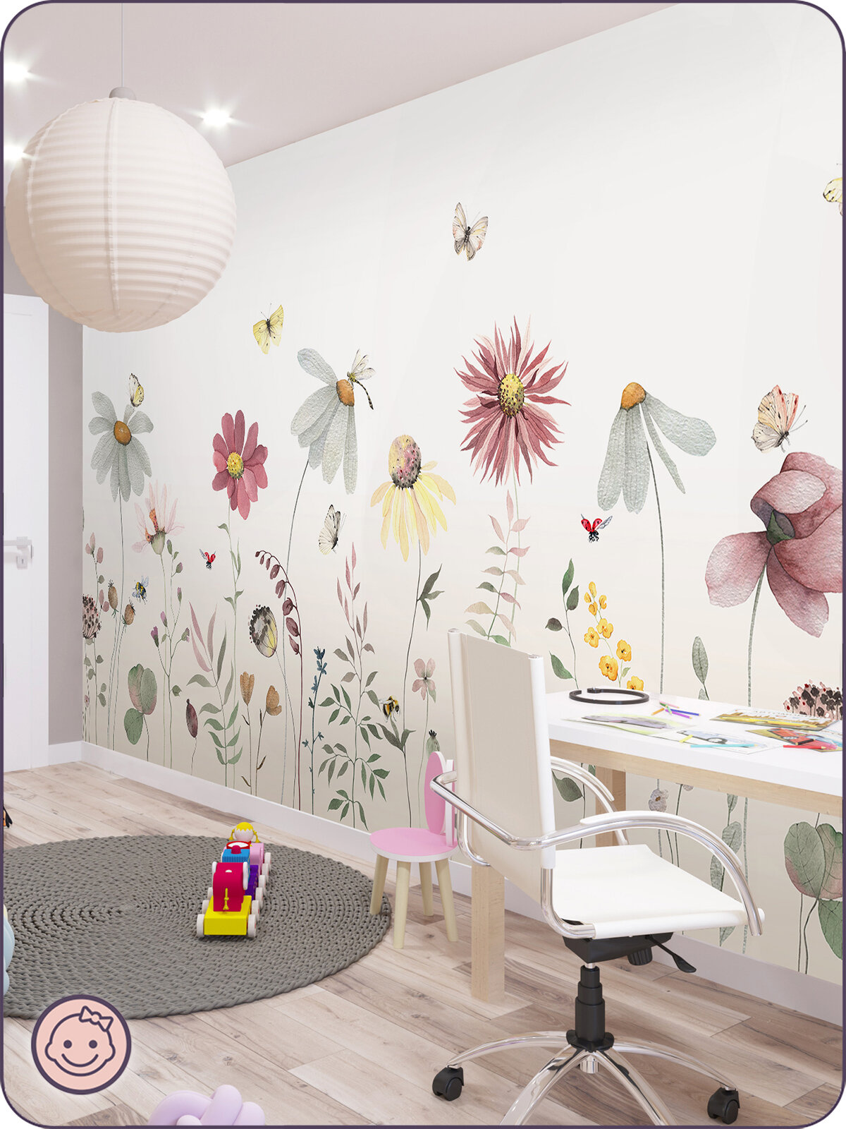 Фотообои на стену флизелиновые 3d Детские Цветы Бабочки 300х270 см Bartonwall K320_C 6 900 ₽
