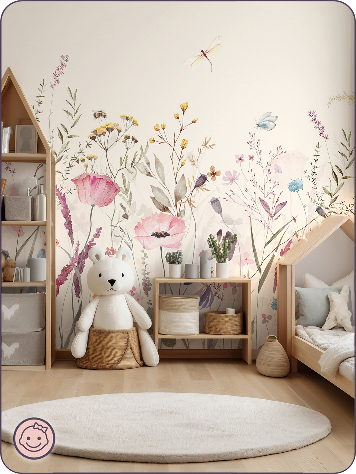 Фотообои на стену флизелиновые 3d Детские Цветы Бабочки 300х270 см Bartonwall K320_P 6 900 ₽