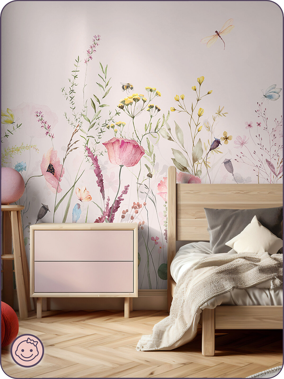 Фотообои на стену флизелиновые 3d Детские Цветы Бабочки 200х270 см Bartonwall K320_C 4 600 ₽