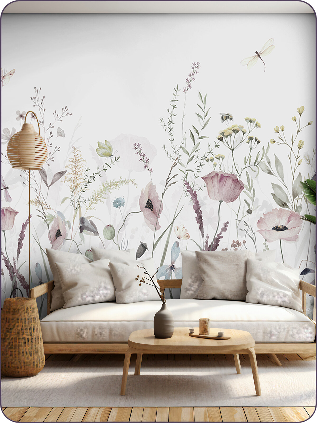Отзывы на Фотообои на стену флизелиновые 3d Полевые Цветы Бабочки 600х270 см Bartonwall K285-G